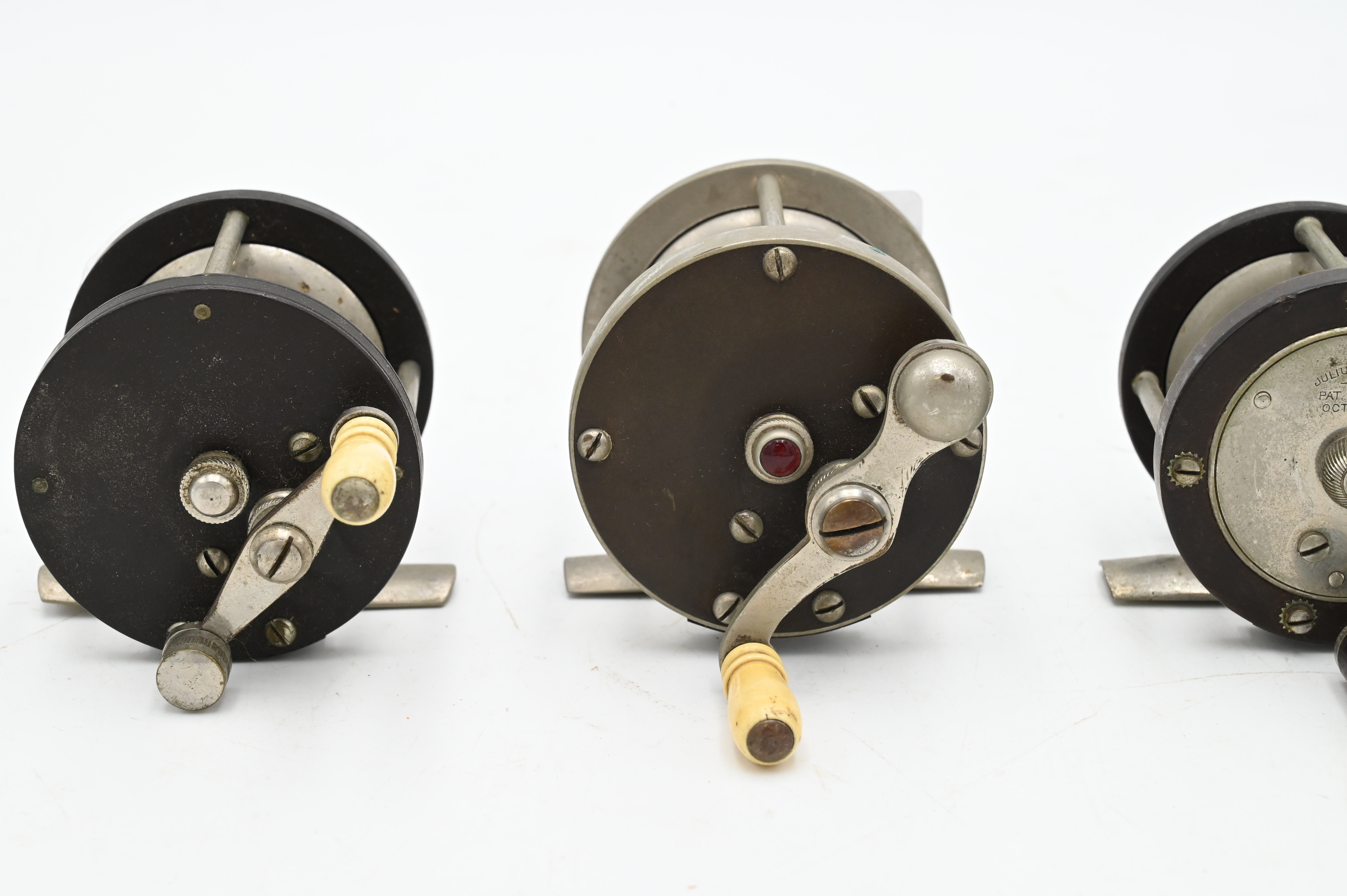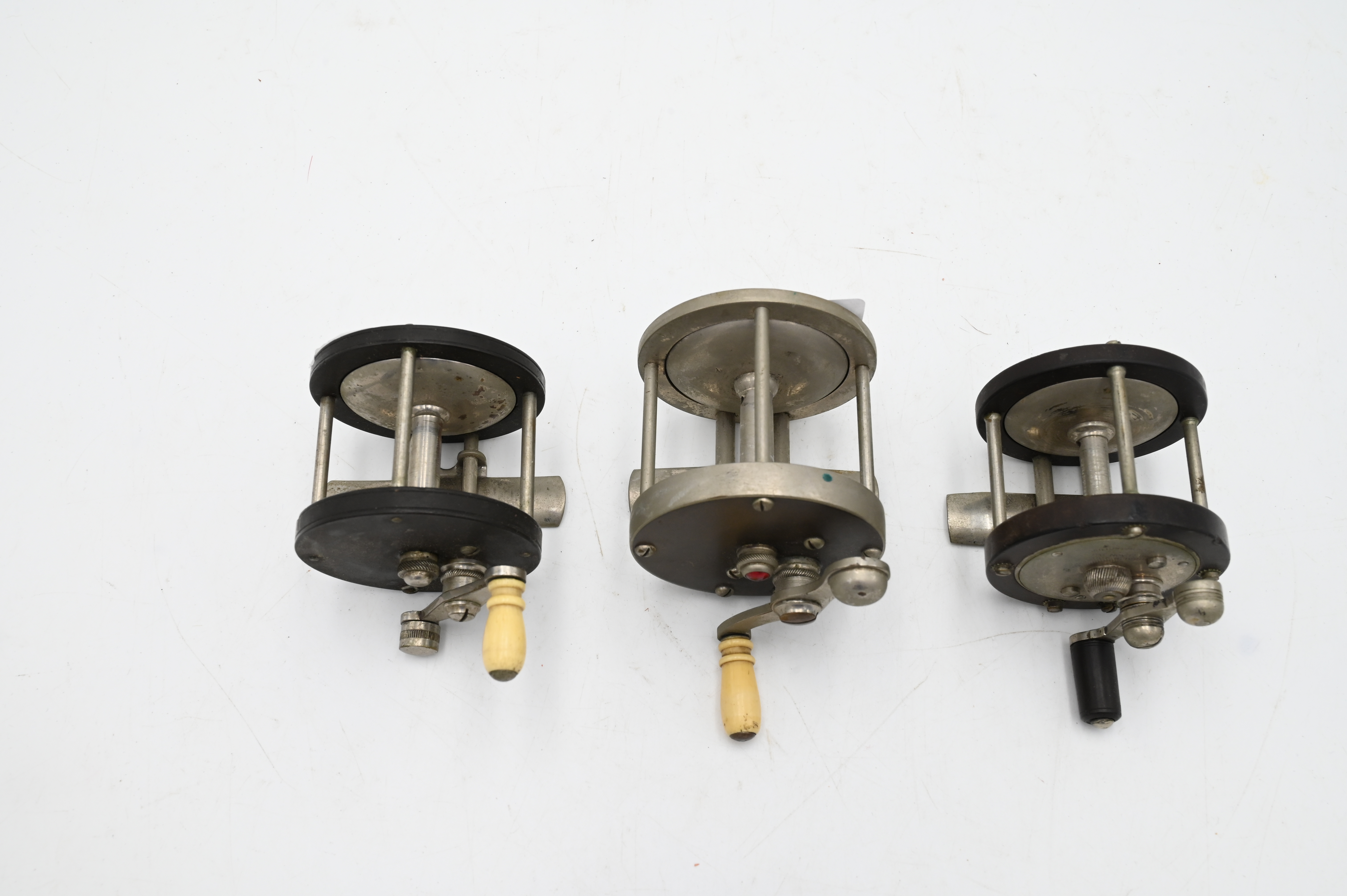 Three Vintage Baitcasting Reels Bakelite, to include one Julius Van Hoff, one the special casting reel jeweled, along with one empire city.