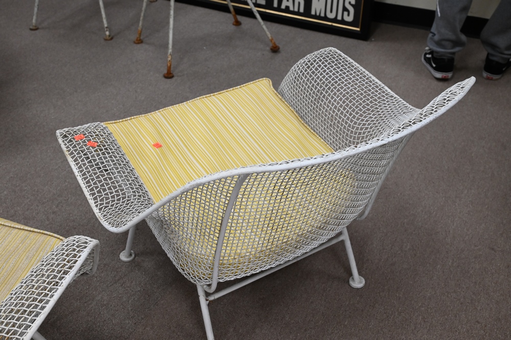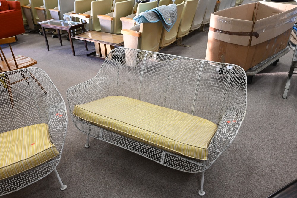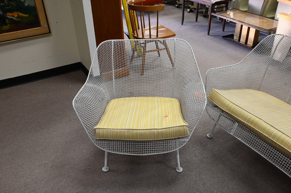 Lot 301: Two Piece Woodard Sculptura Outdoor Wrought Iron Set, to include large club chair and settee, length 52 inches.