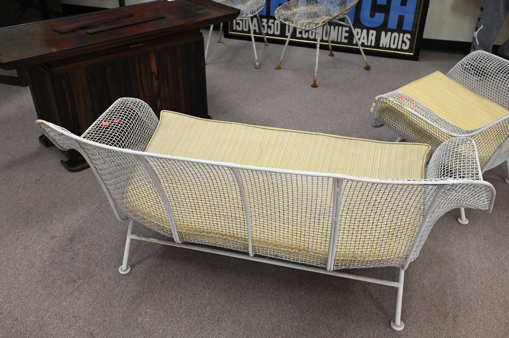 Two Piece Woodard Sculptura Outdoor Wrought Iron Set, to include large club chair and settee, length 52 inches.