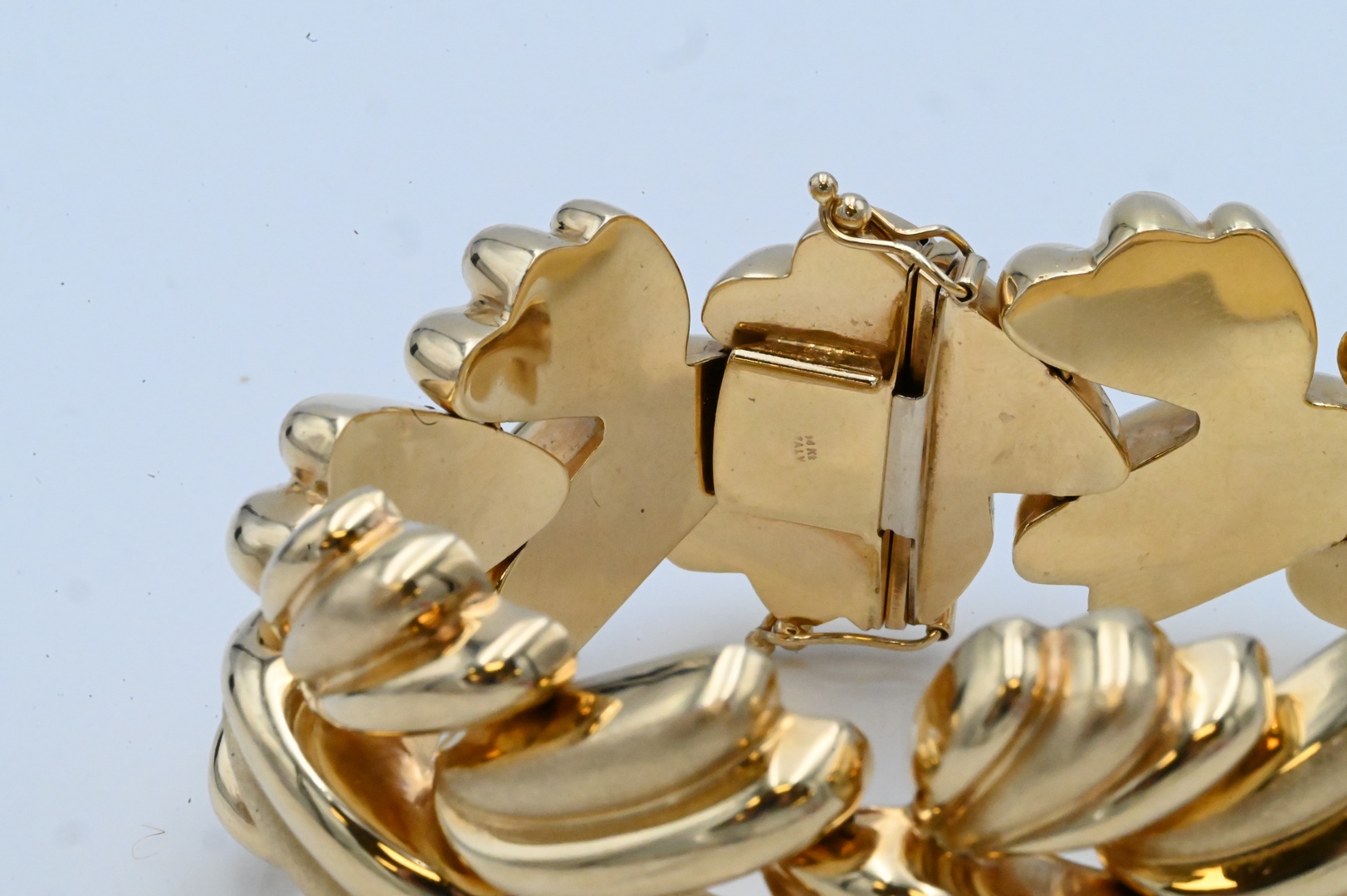 14 Karat Yellow Gold Bracelet length 7 1/4 inches, width 1 inches, 61.7 grams