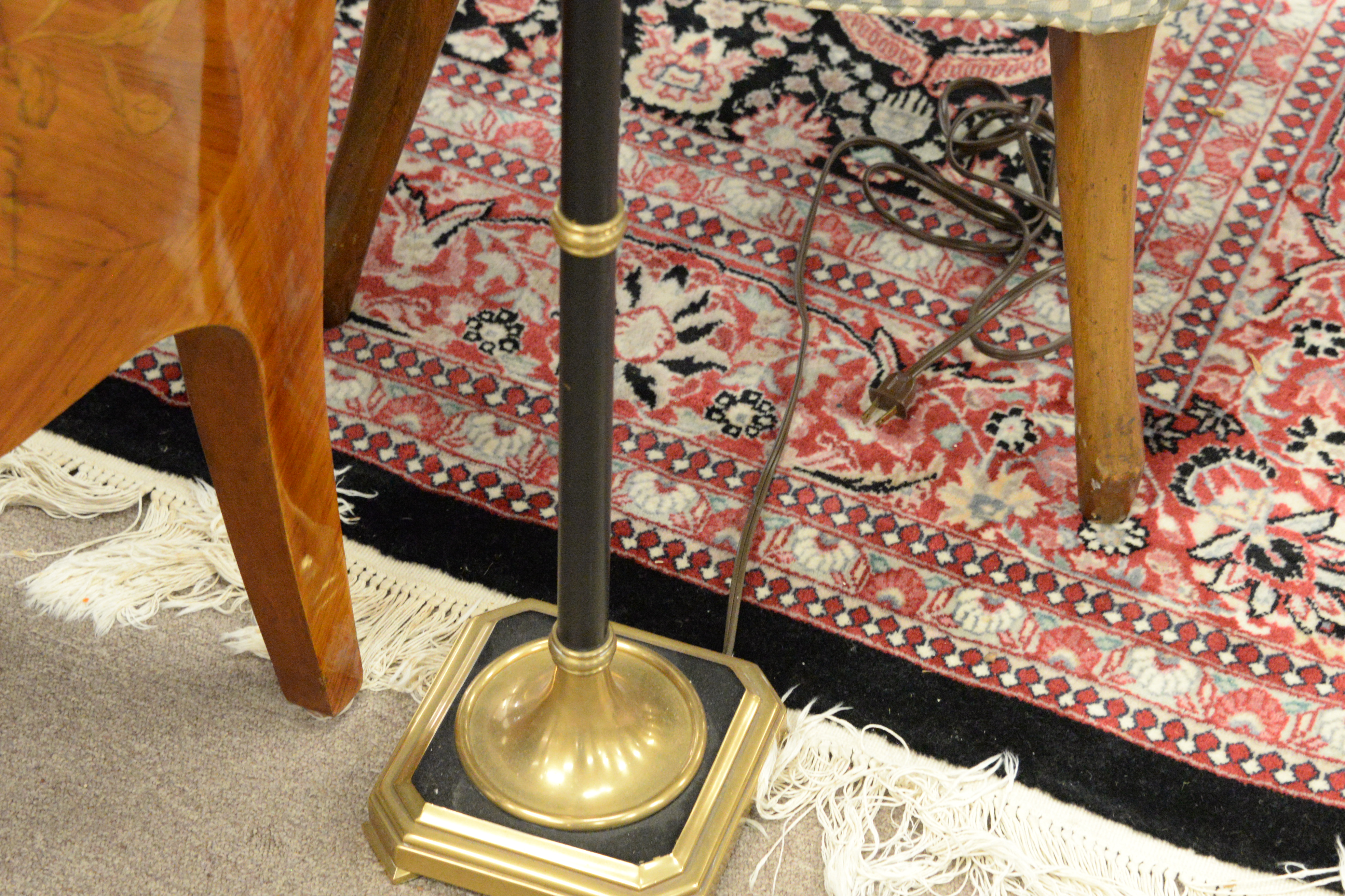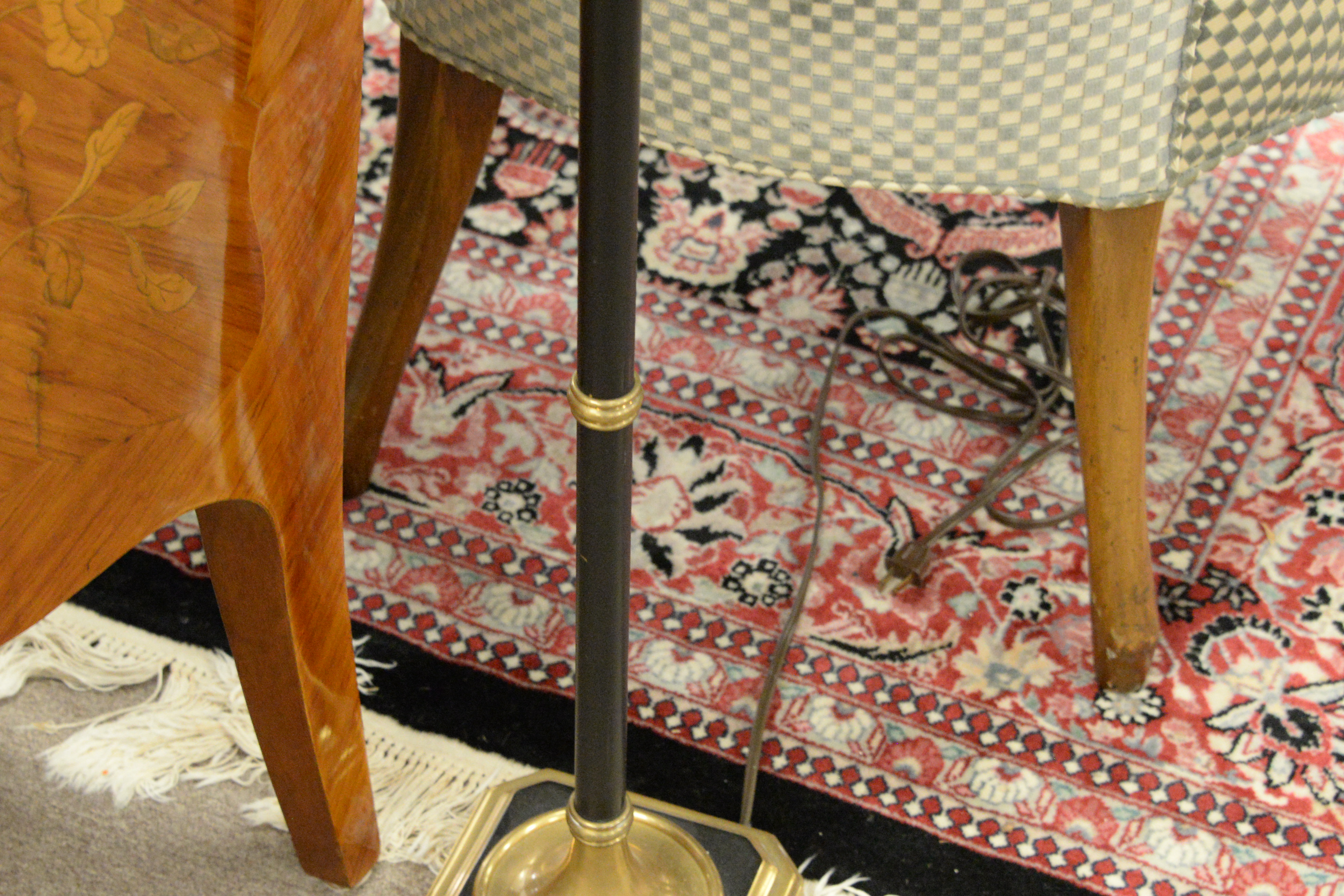 Brass Two Arm Standing Floor Lamp With Tole Shade, Provenance: Florian Papp, 12/03/01 ($1,200), height 56 inches