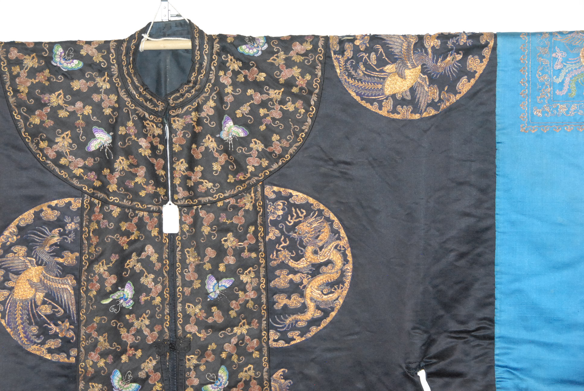 Chinese black ground phoenix bird robe, having three phoenix birds.