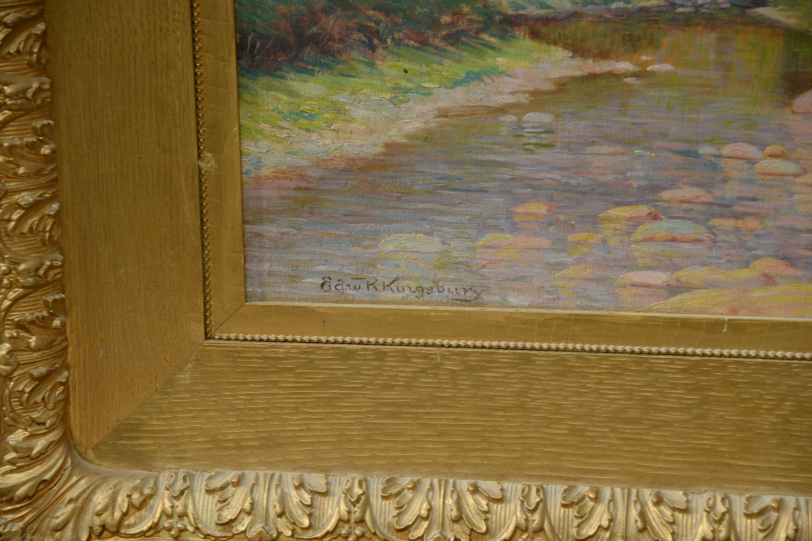 Edward Reynolds Kingsbury American, 1855 – 1940, stream in the woods, oil on canvas, signed lower right Edw R. Kingsbury, 16 x 20.