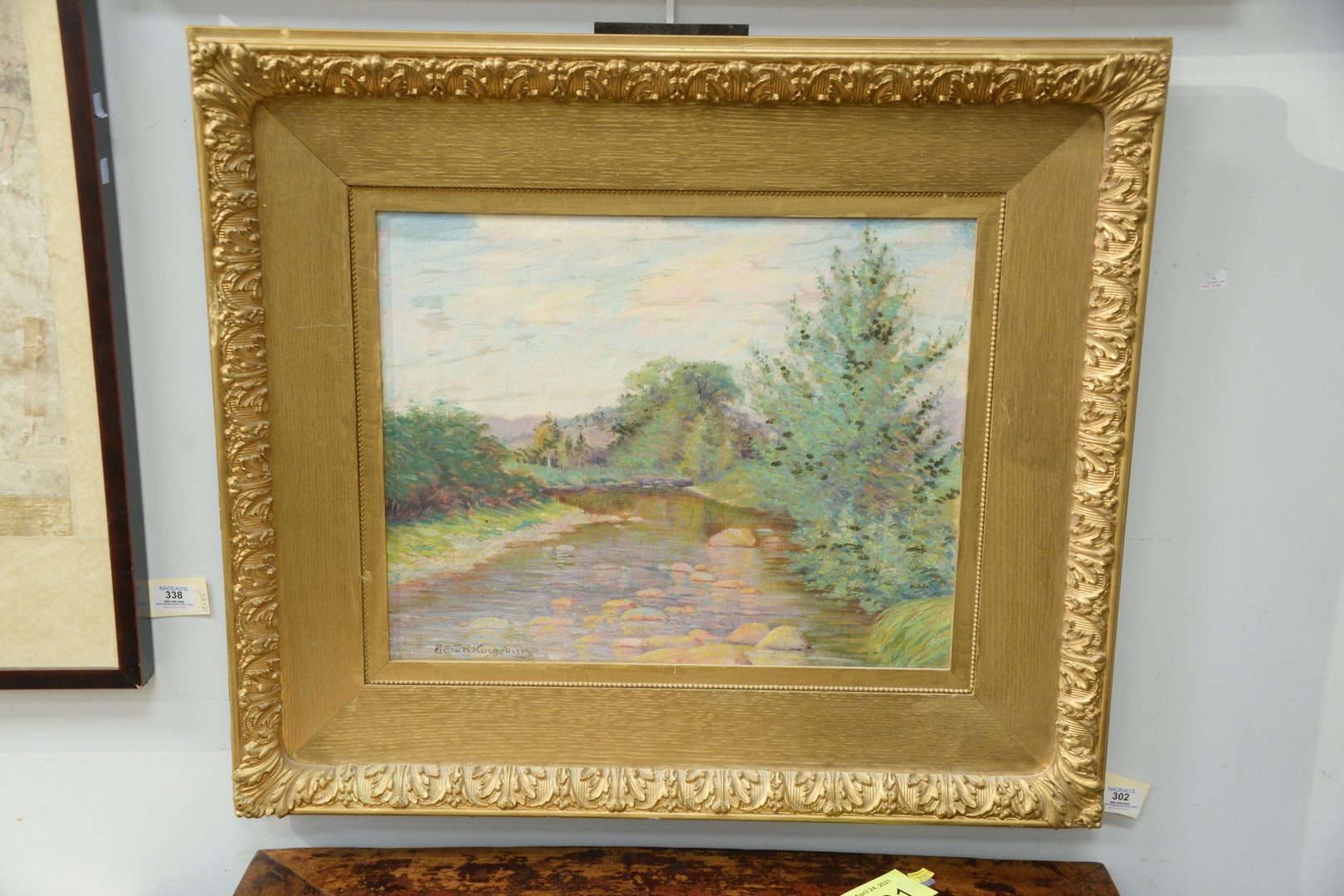 Lot 302: Edward Reynolds Kingsbury American, 1855 – 1940, stream in the woods, oil on canvas, signed lower right Edw R. Kingsbury, 16 x 20.