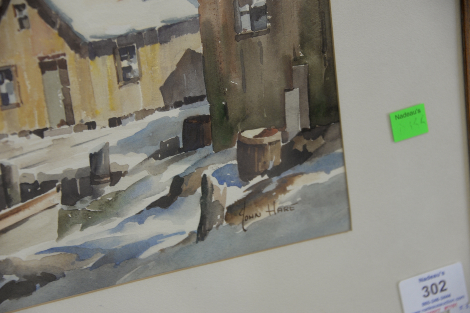 Lot 302: John Cuthbert Hare 1908-1978 watercolor Winter Sunlight signed lower right John Hare having A.A. Munsons Son Fine Art label. sight…