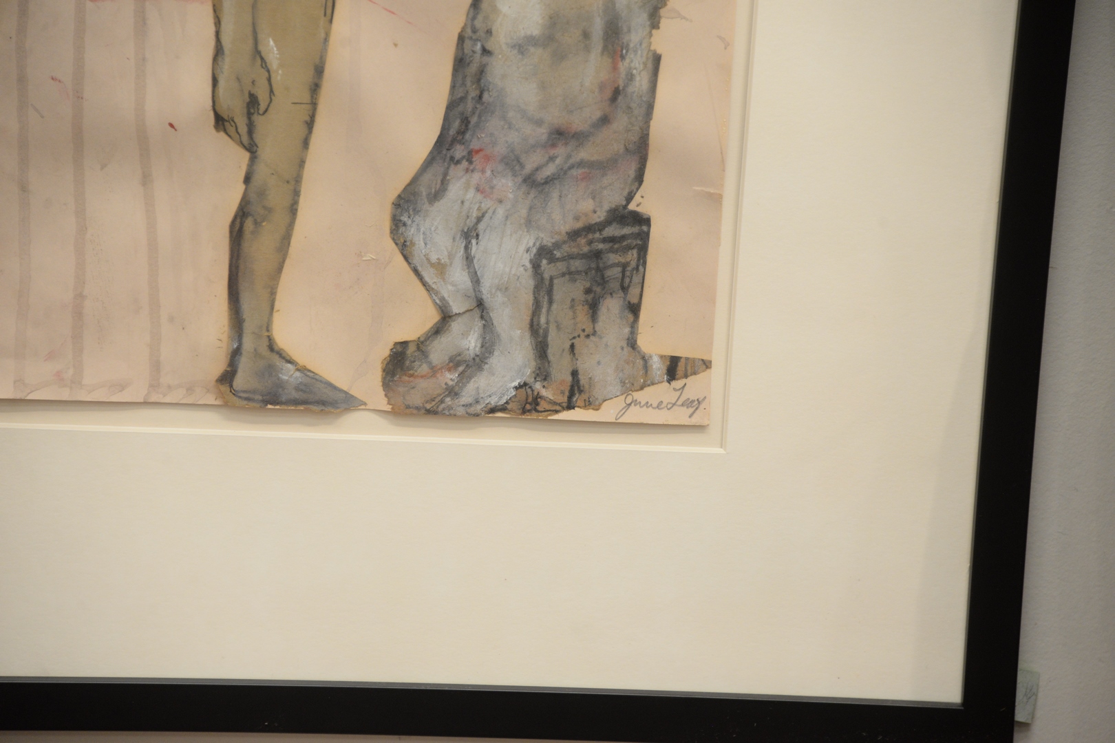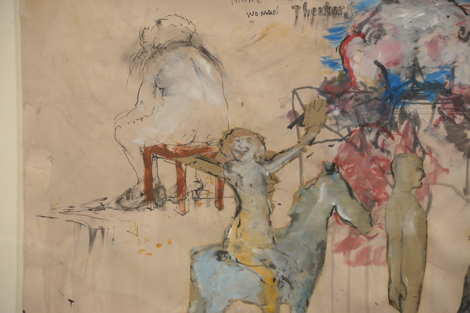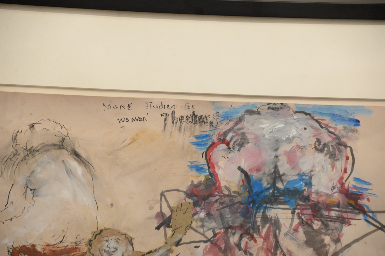 June Leaf (American/Canadian, b. 1929), More Studies for Women Theaters, 1969, watercolor with collage on paper, signed lower right June Leaf, Galerie le Chat Bernard and Virginia Lust Gallery labels verso, 19 3/4″ x 25 1/2″.