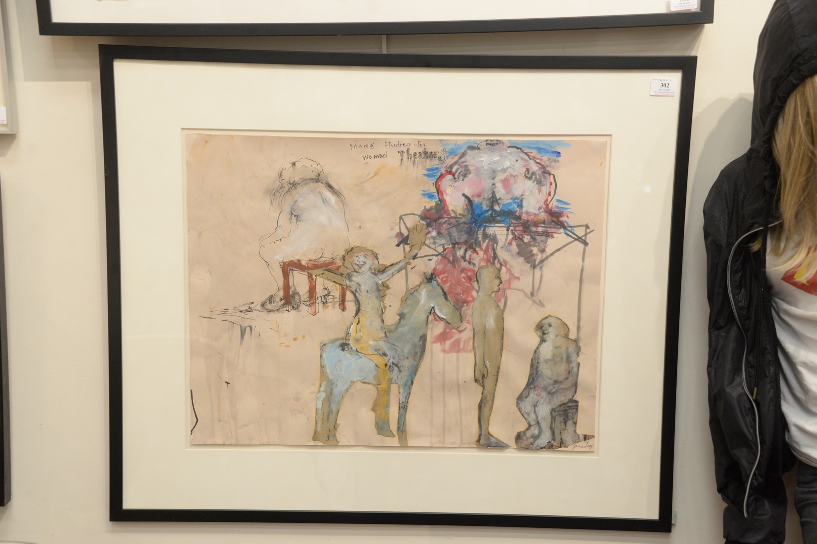 Lot 302: June Leaf (American/Canadian, b. 1929), More Studies for Women Theaters, 1969, watercolor with collage on paper, signed lower right June Leaf, Galerie le Chat Bernard and Virginia Lust Gallery labels verso, 19 3/4″ x 25 1/2″.