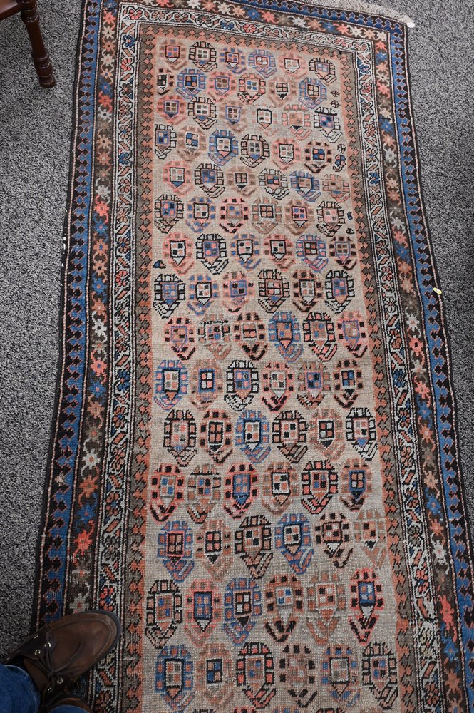 Oriental Runner, holes and worn, 2′ 10″ x 8′ 6″.