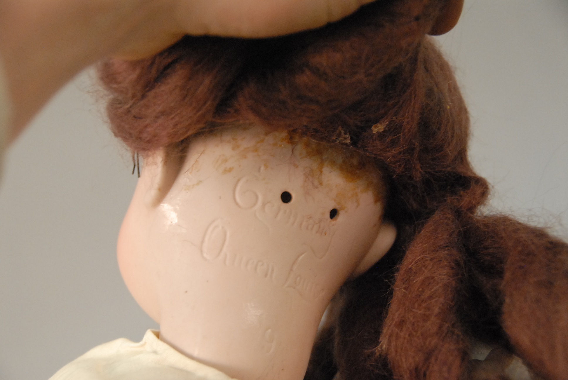Queen Louis Germany 9 bisque head doll one finger broke, lg. 25in.