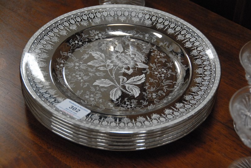 Lot 302: Set of twelve Wedgwood silver luster dinner plates, dia. 10 1/2 in.
