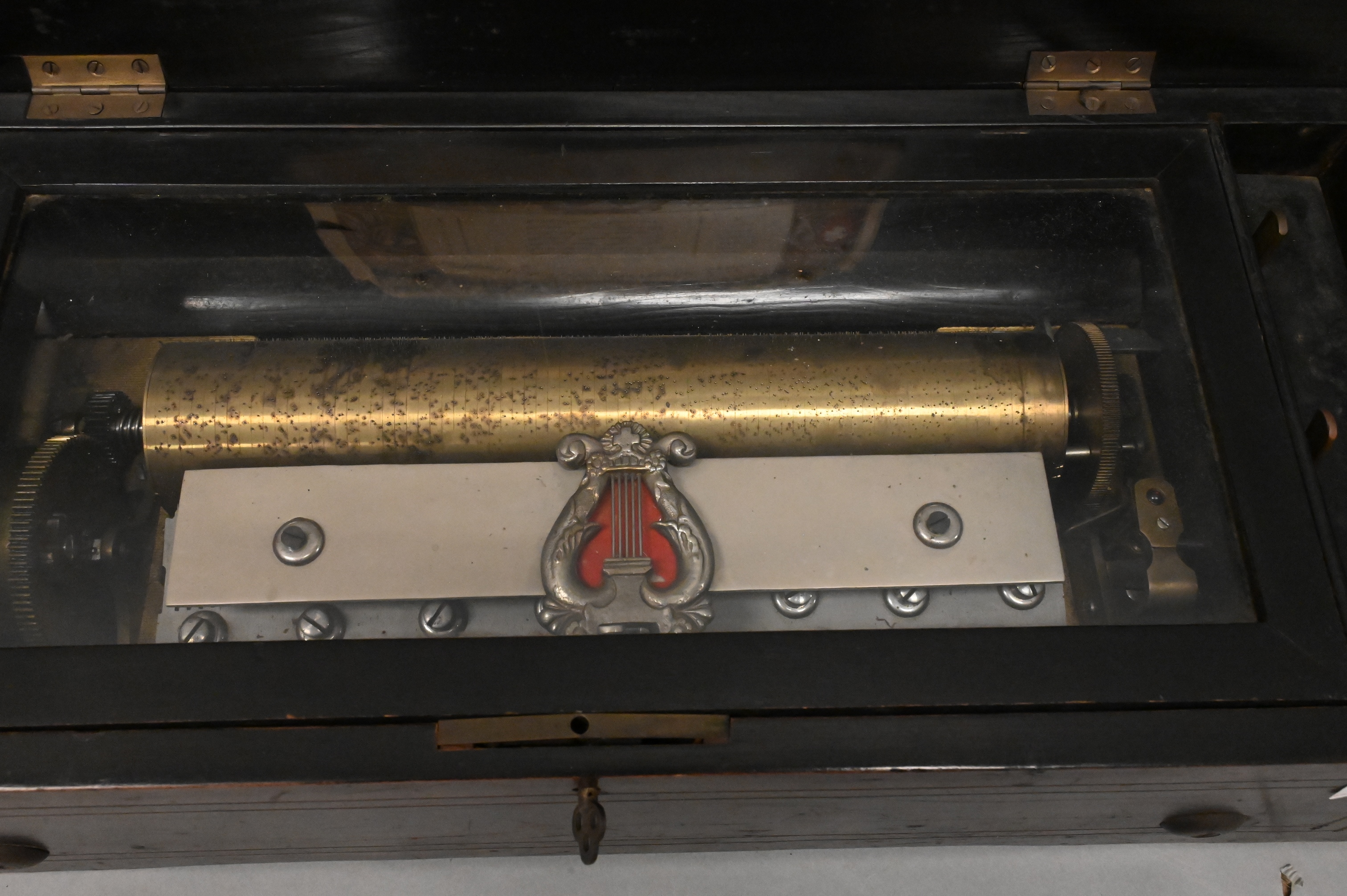 playing eight airs, having tune card, inlaid with floral motif, circa 1876