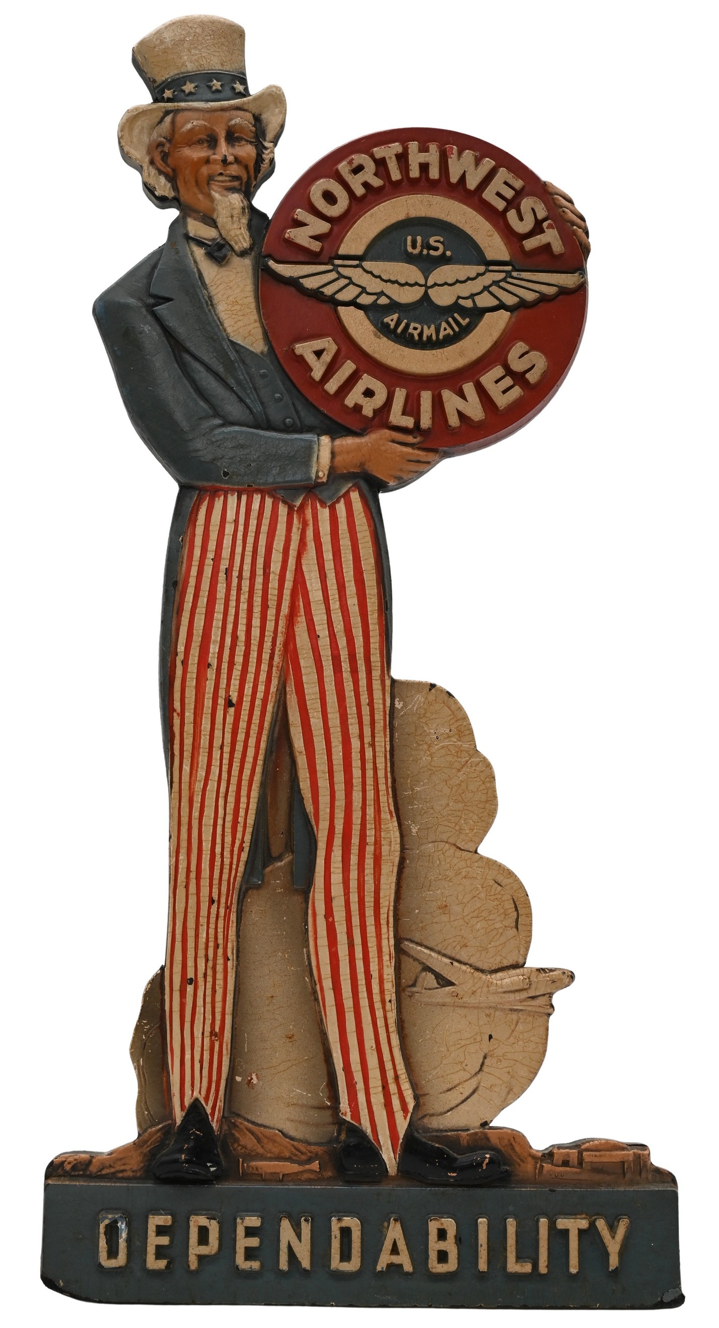Lot 302: Vintage Uncle Sam Northwest Airlines Airmail Standee Sign