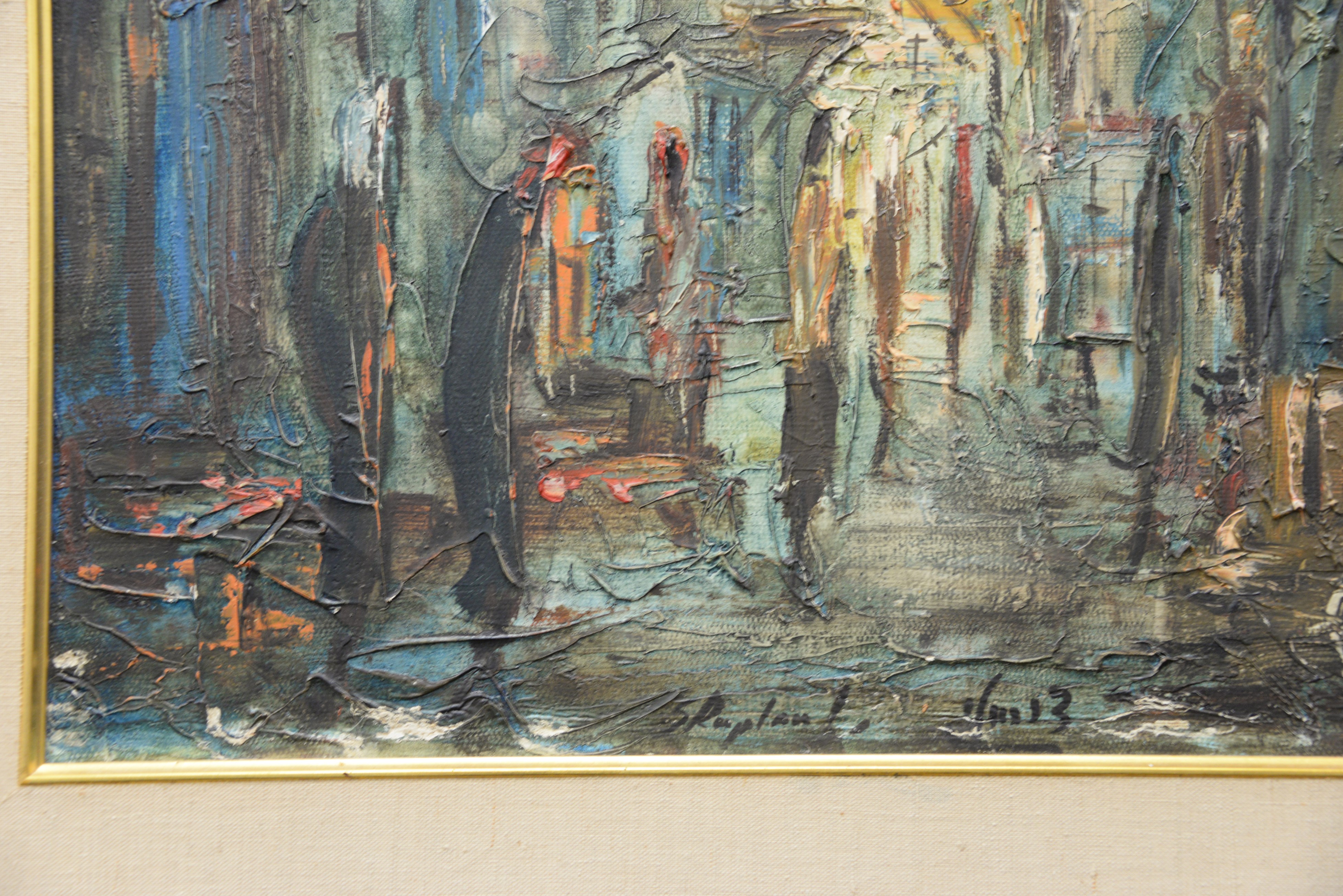 Lot 302: ZVI Raphaeli 1924-2005 oil on canvas Jerusalem street scene Market, signed lower left Z Raphaeli, Safrai Art Gallery label on re…