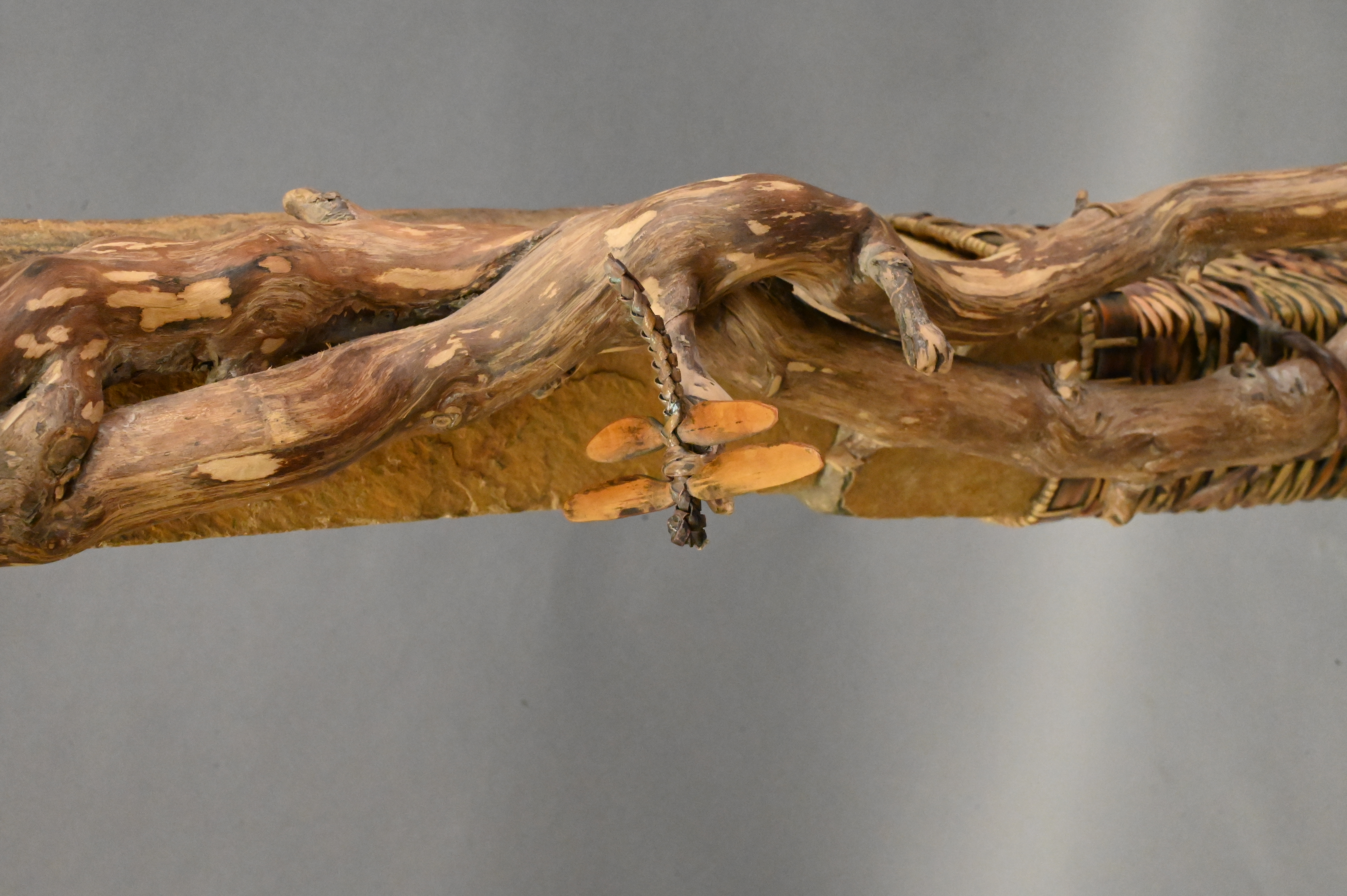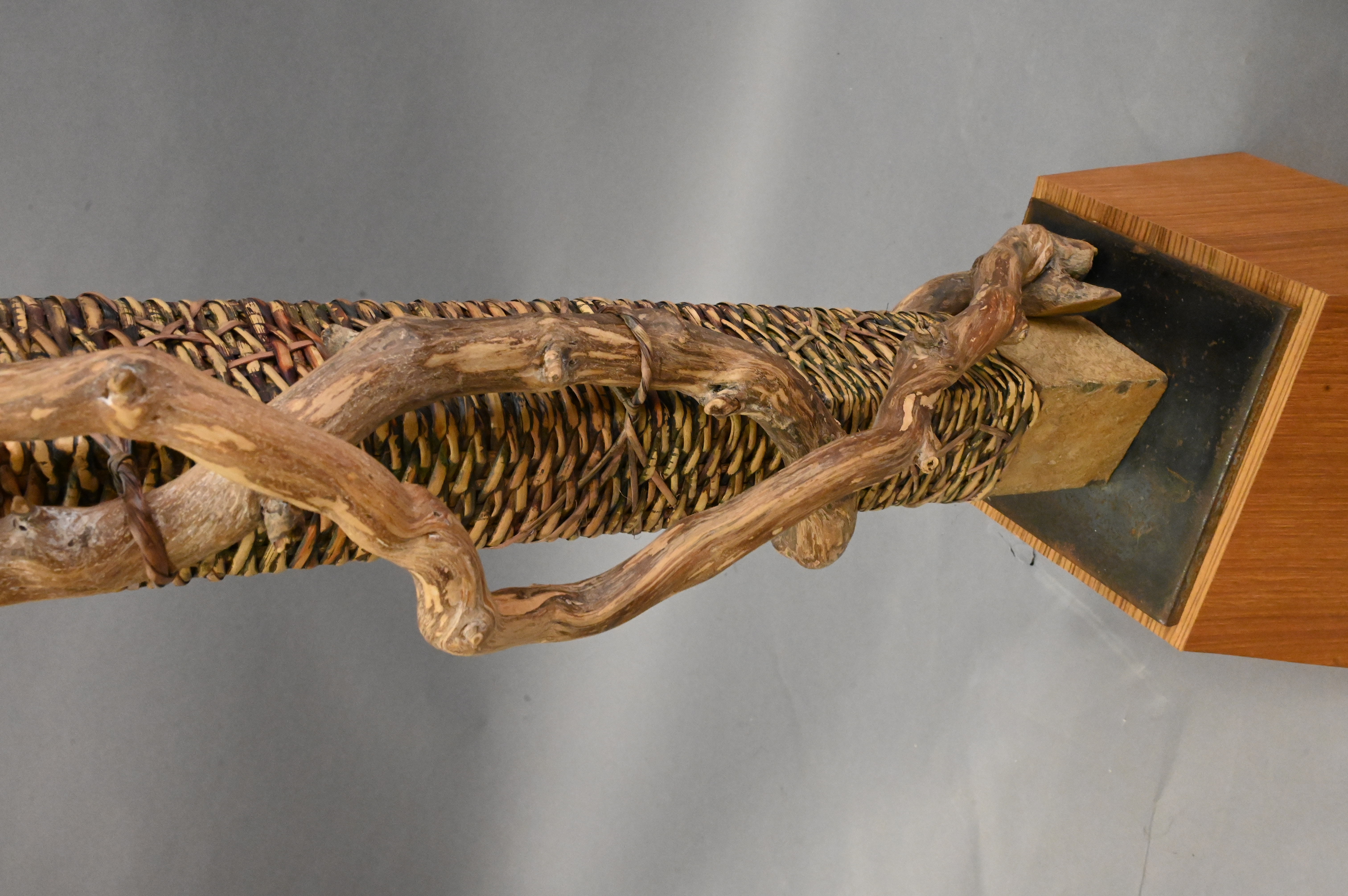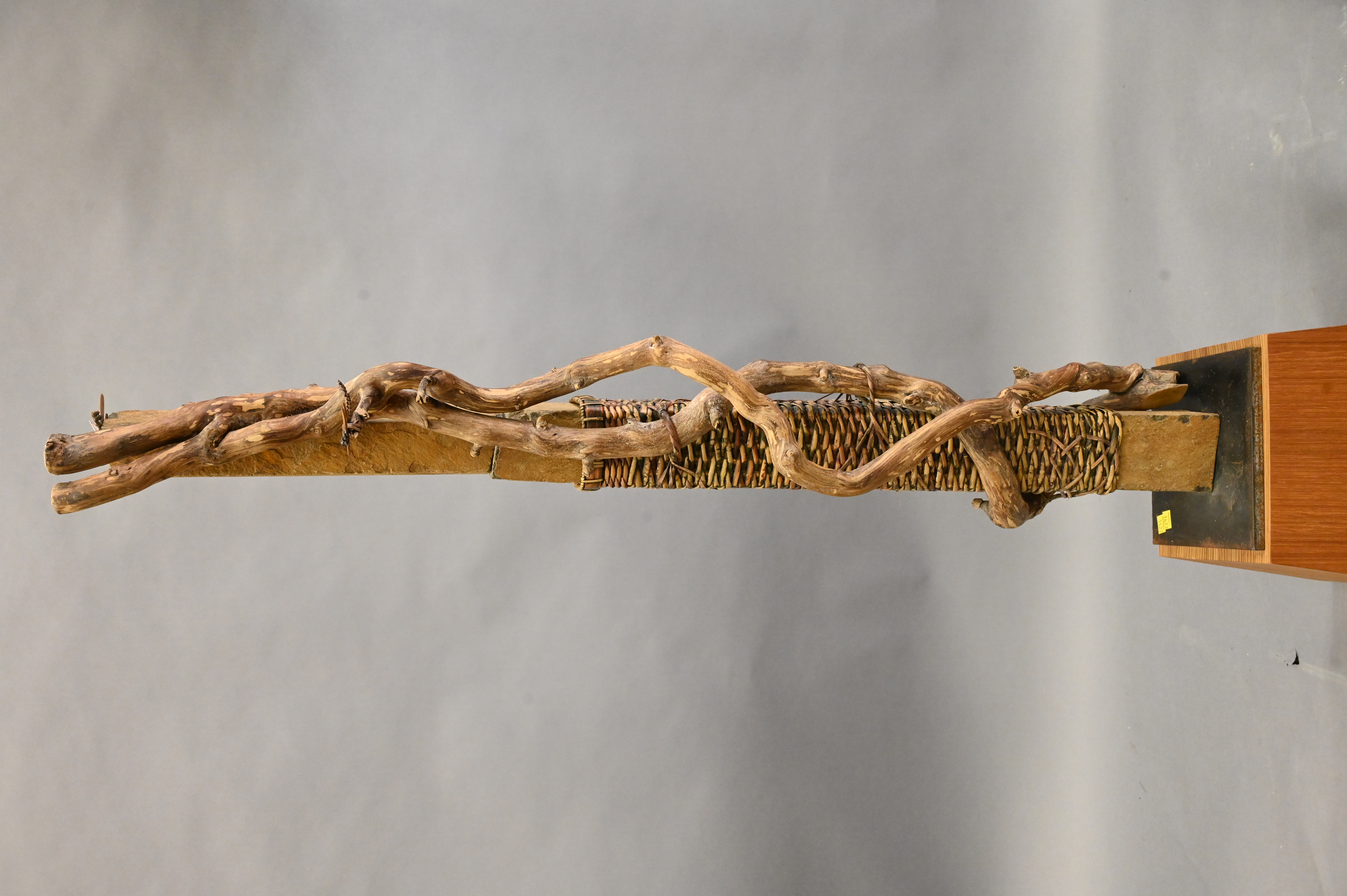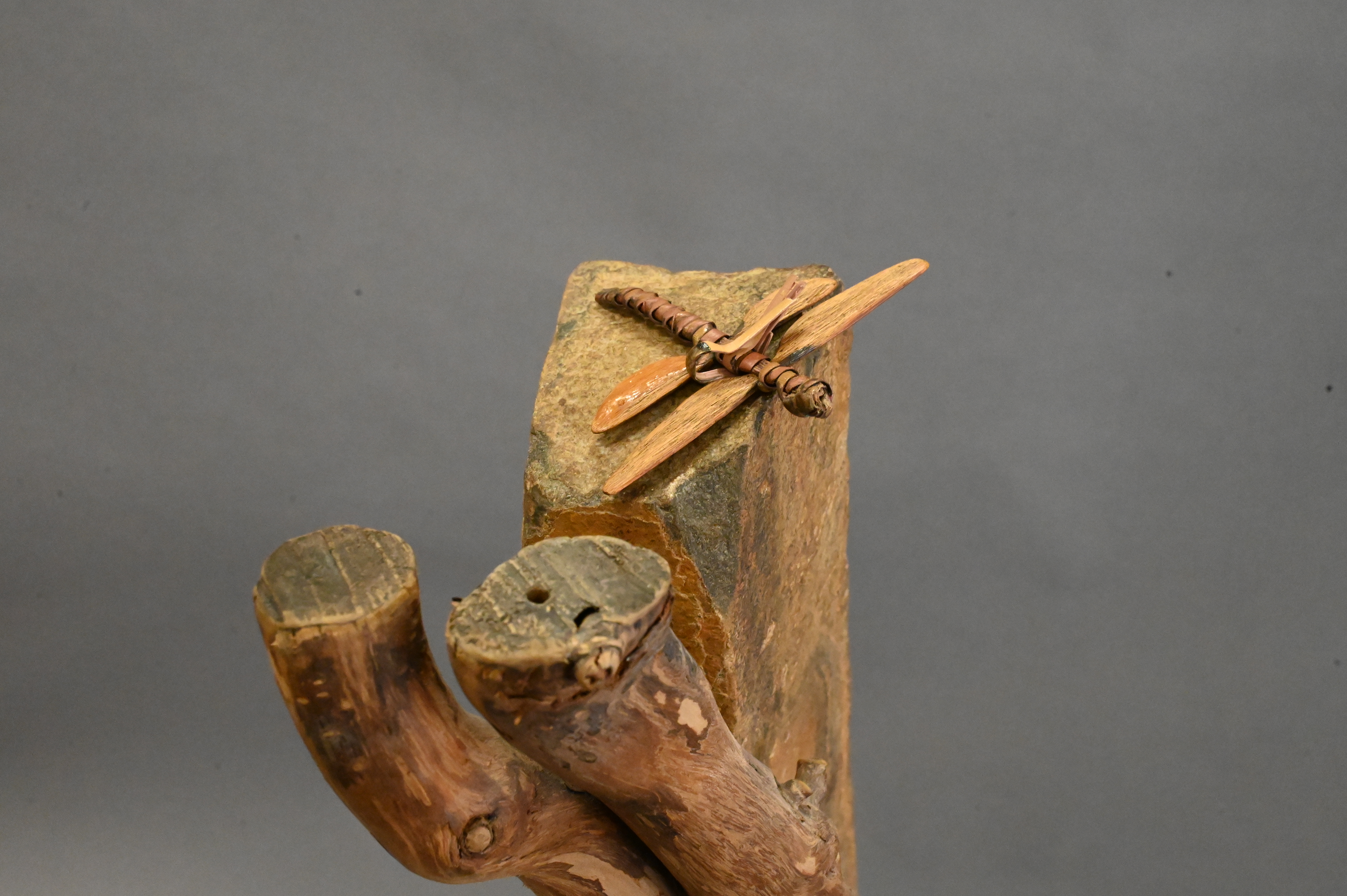 Deloss Webber Stone and Fiber Scultpure, having decorative dragonflies throughout, height 54 inches.