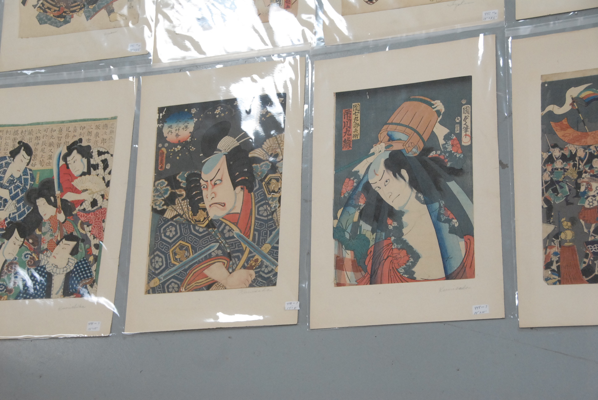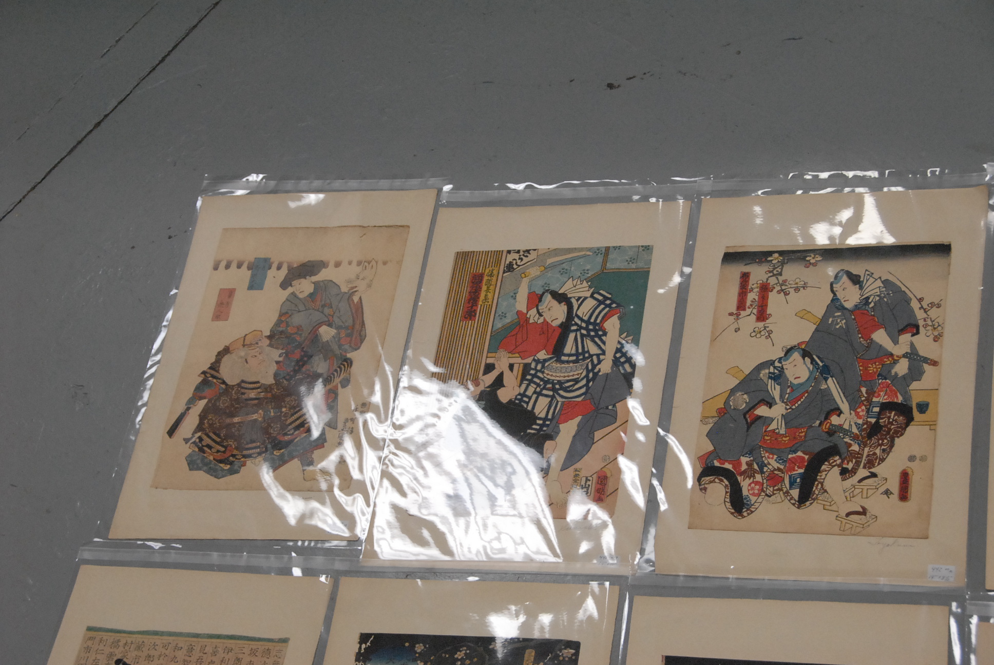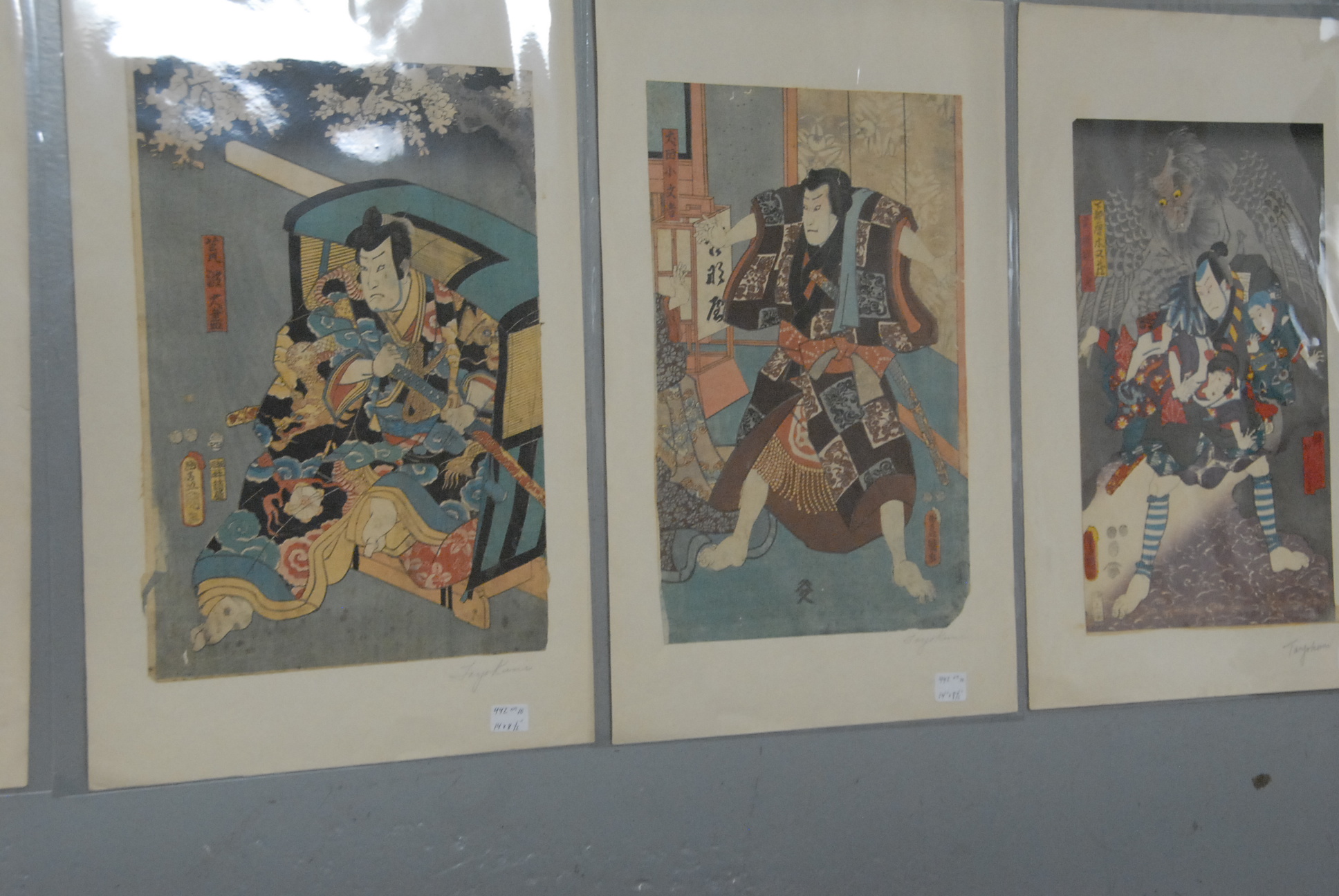 34 Japanese woodblock prints, pencil signed Toyokoni & Kuniyoshi.