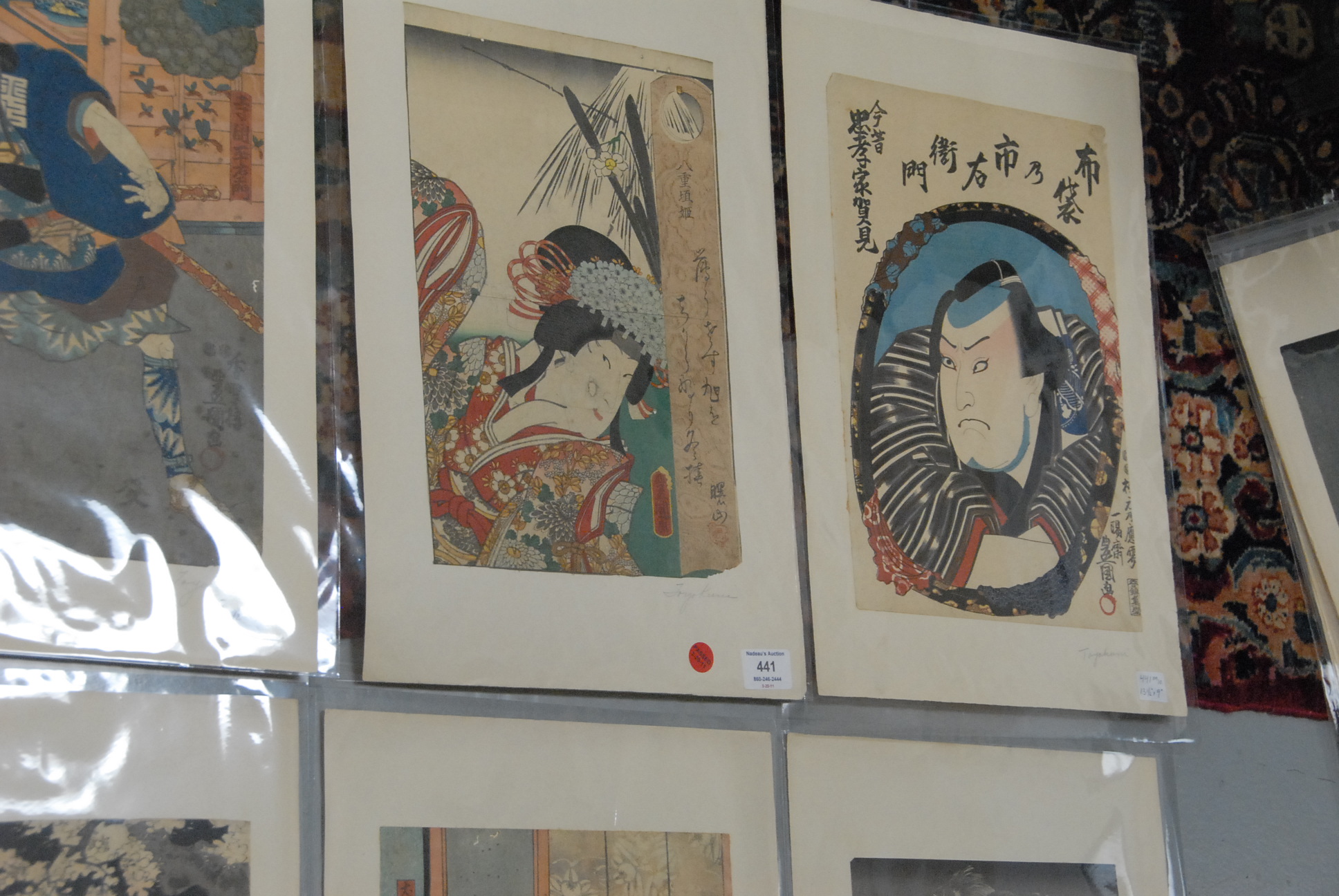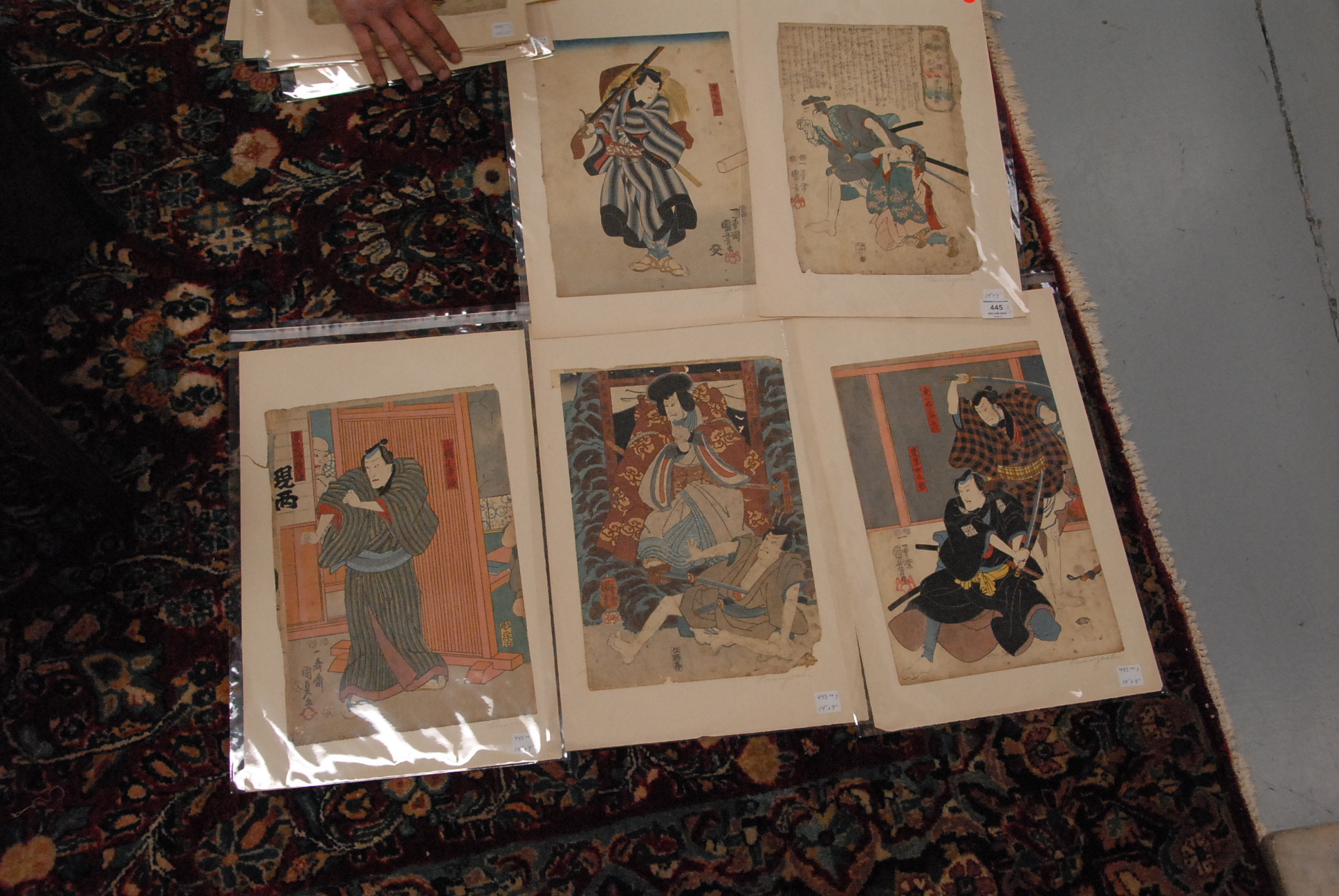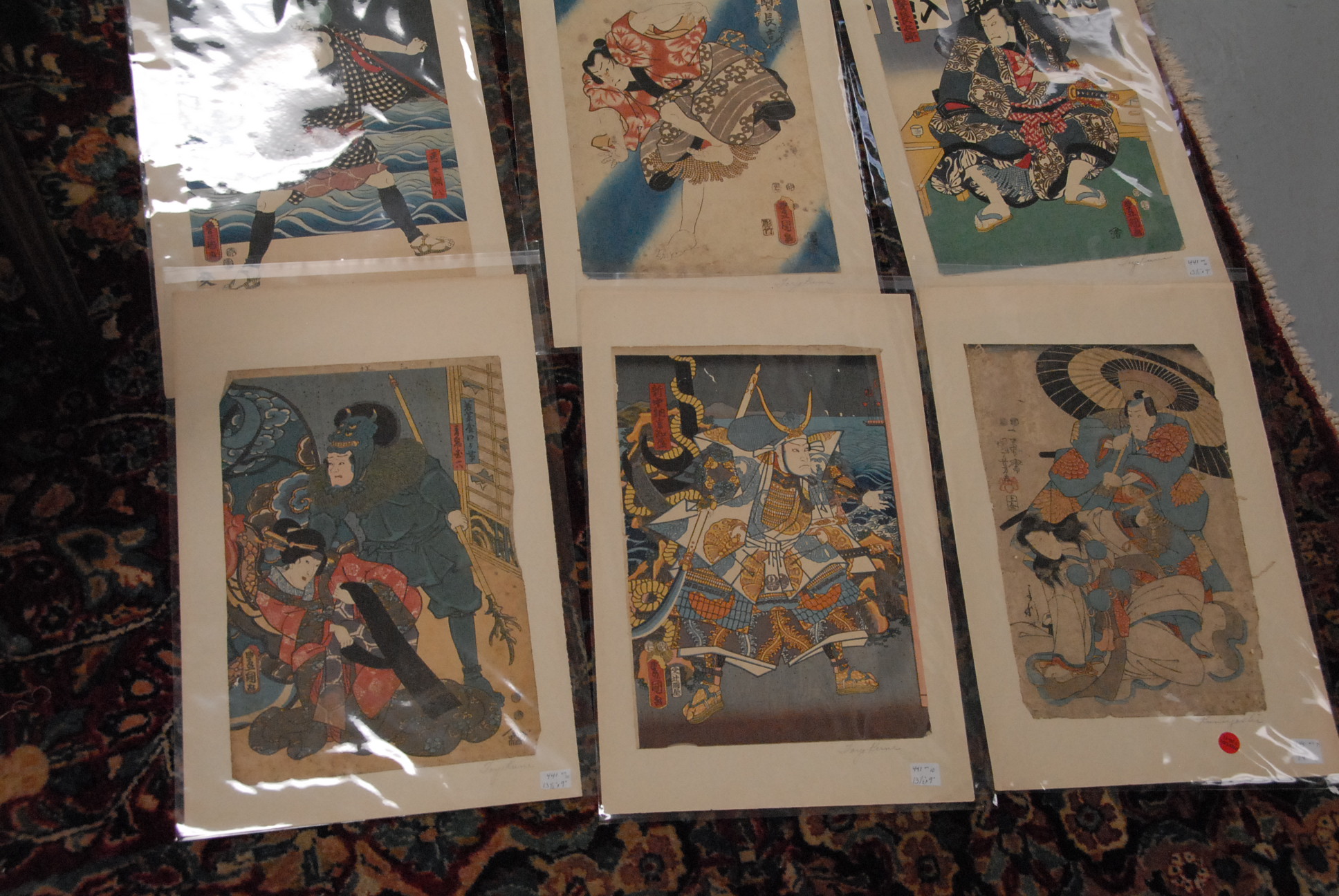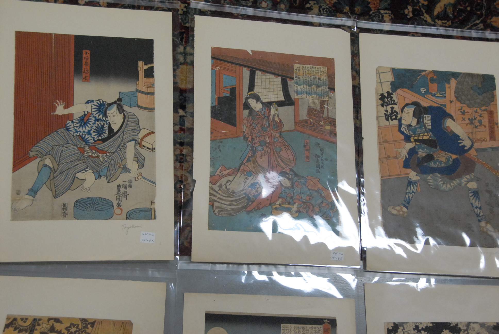 34 Japanese woodblock prints, pencil signed Toyokoni & Kuniyoshi.