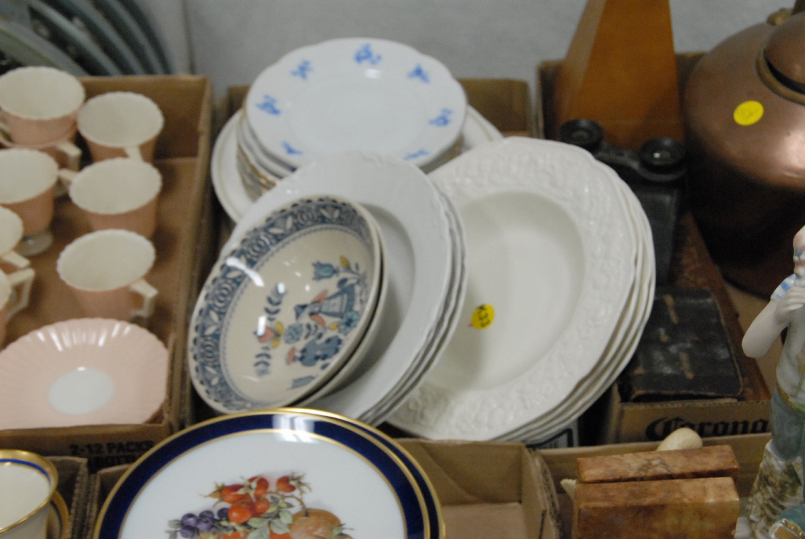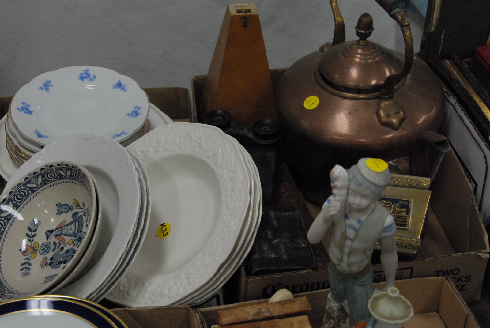 Lot 303: 7 box lots to include dishes, plates, copper