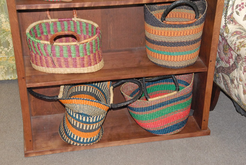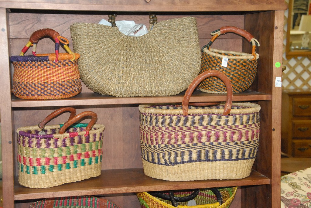 Lot 303: Group of eleven contemporary baskets, some with leather handles, one tagged The Blessing Basket Company.