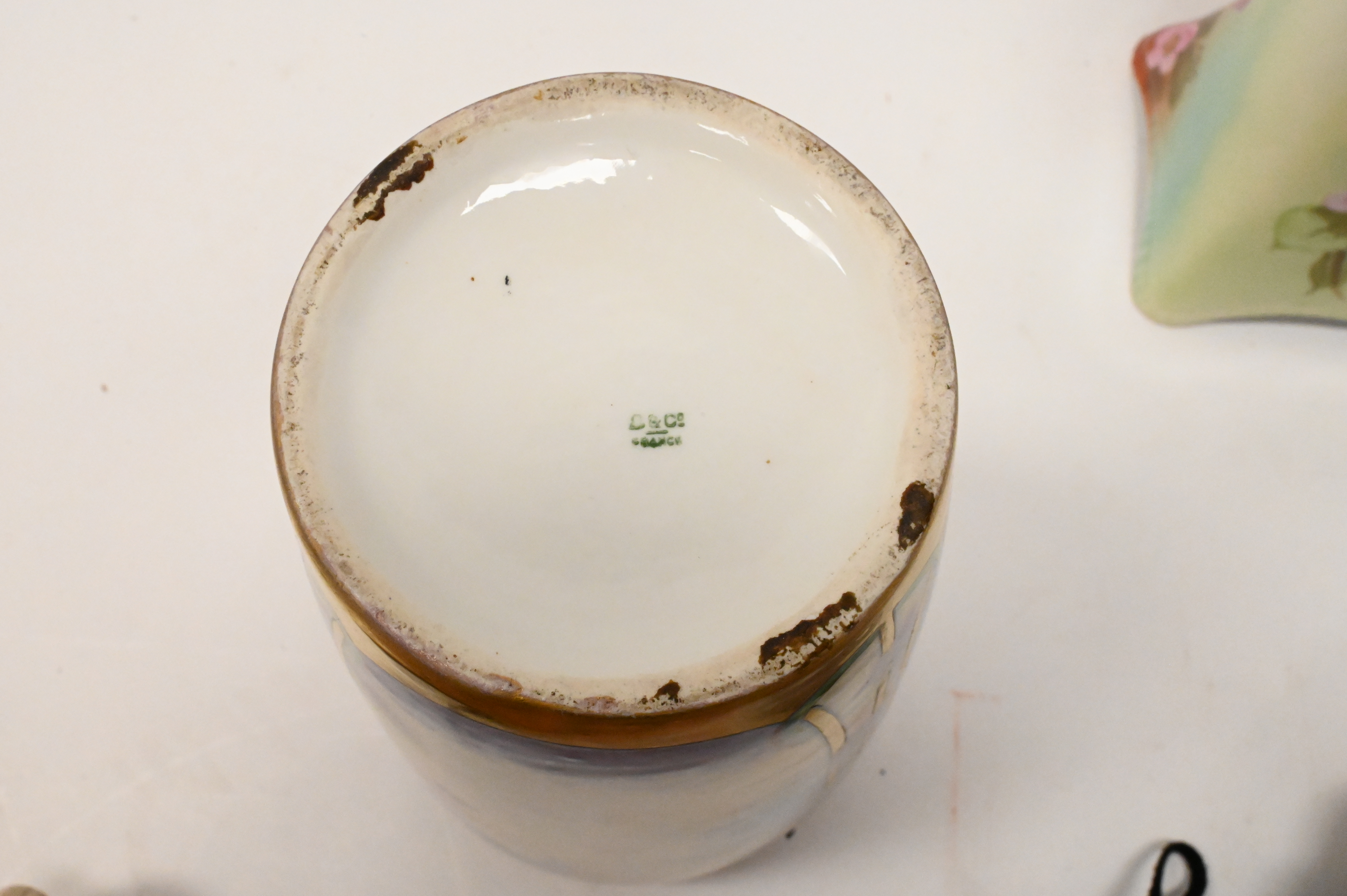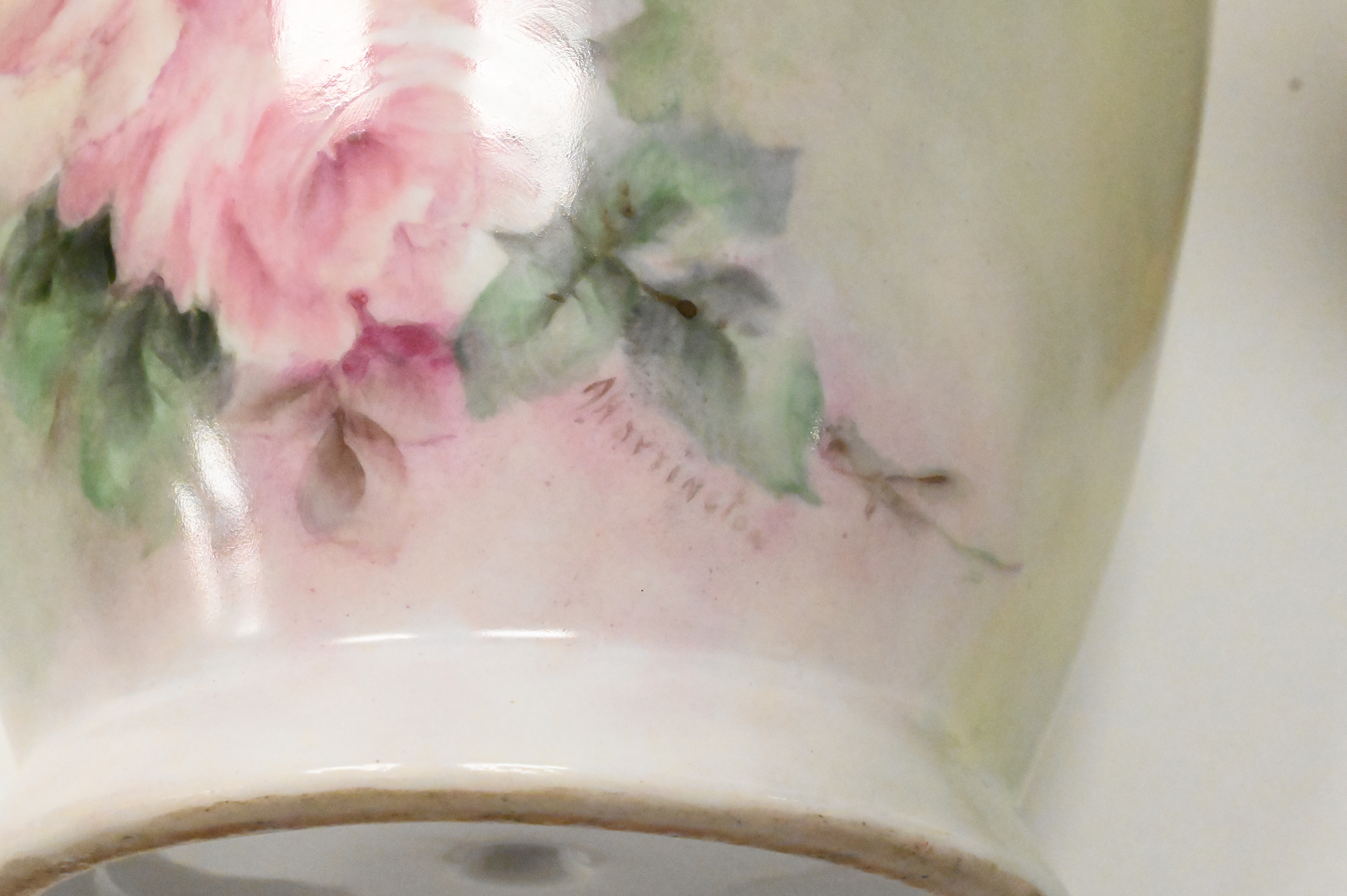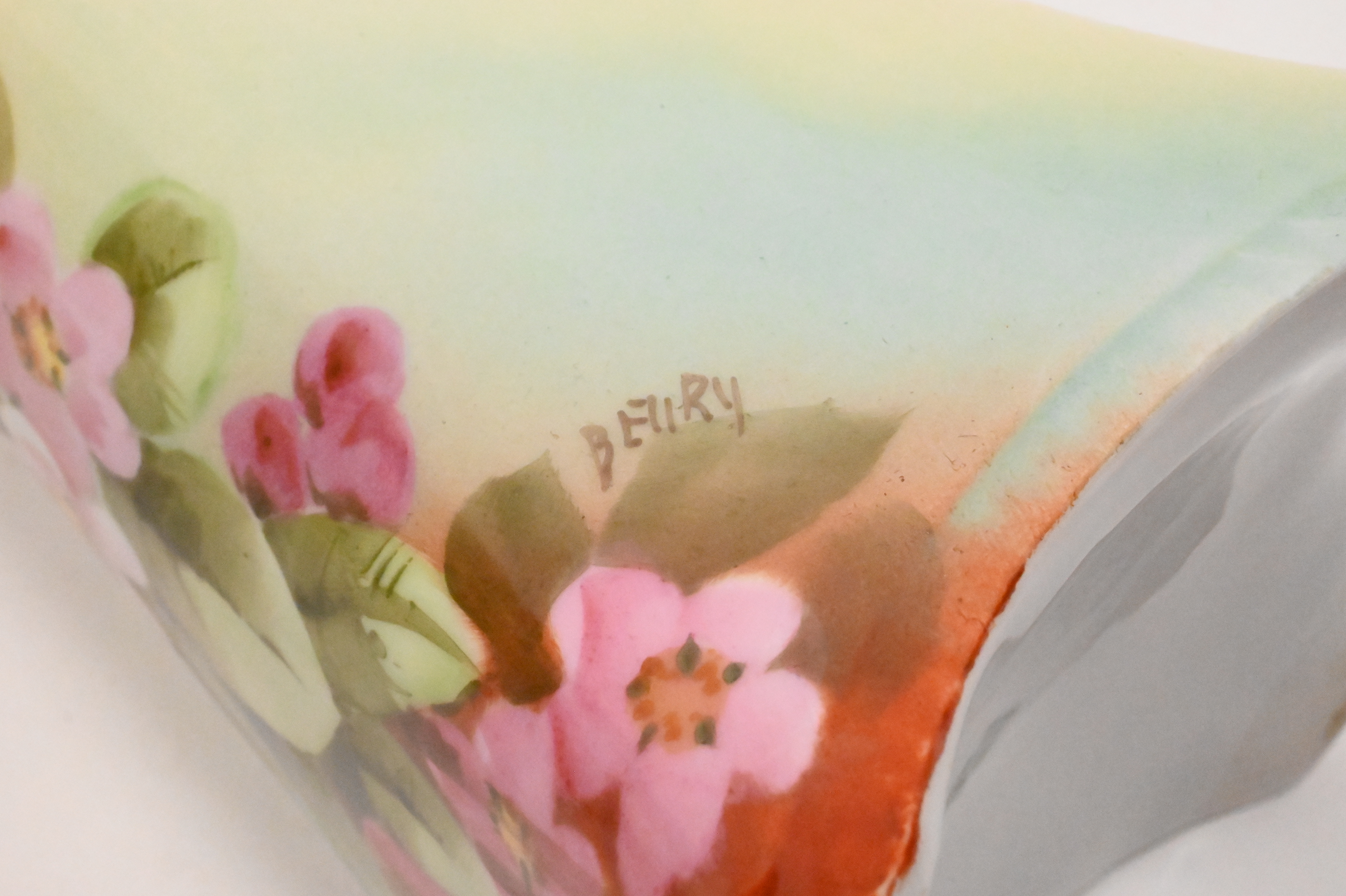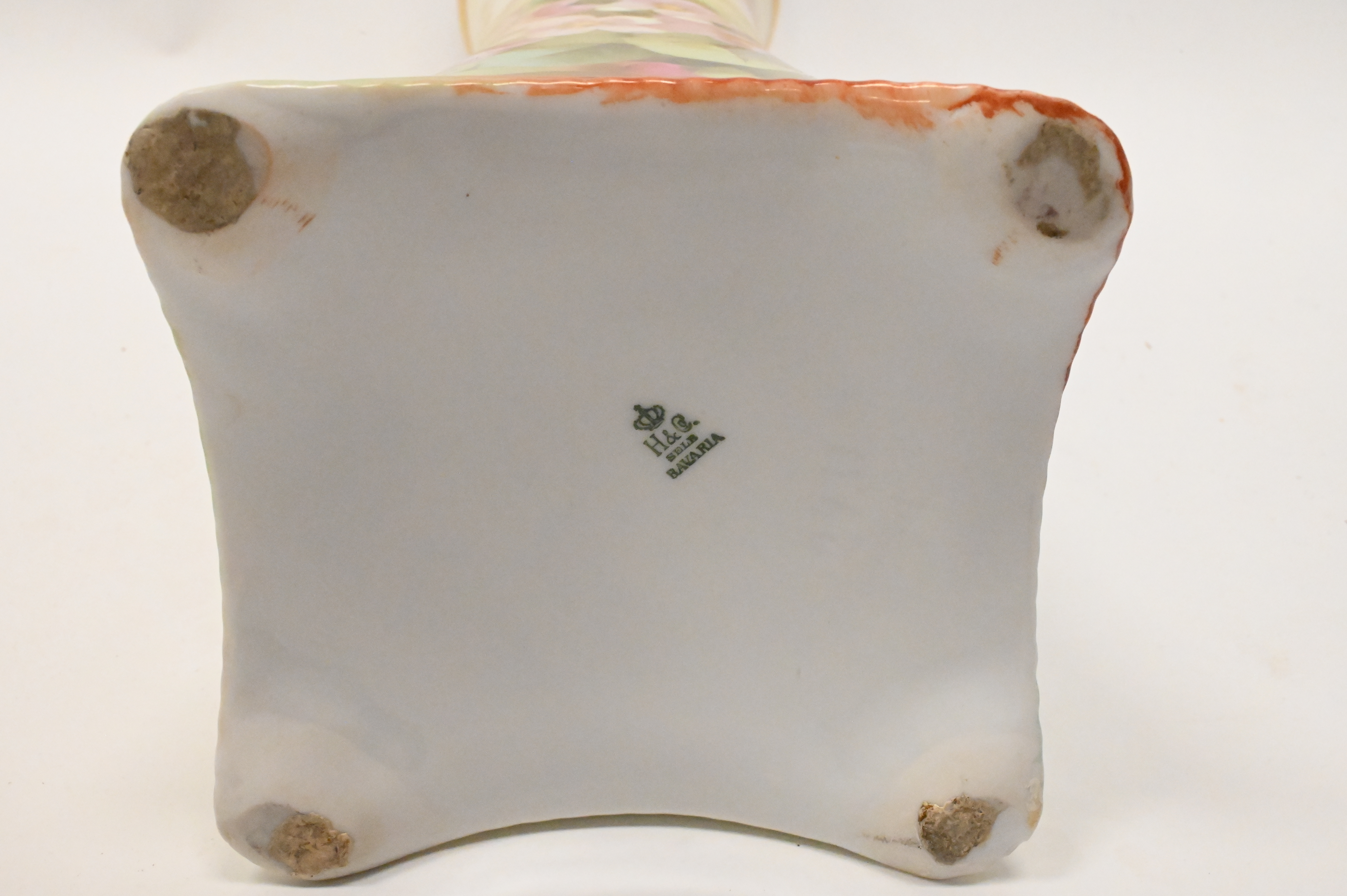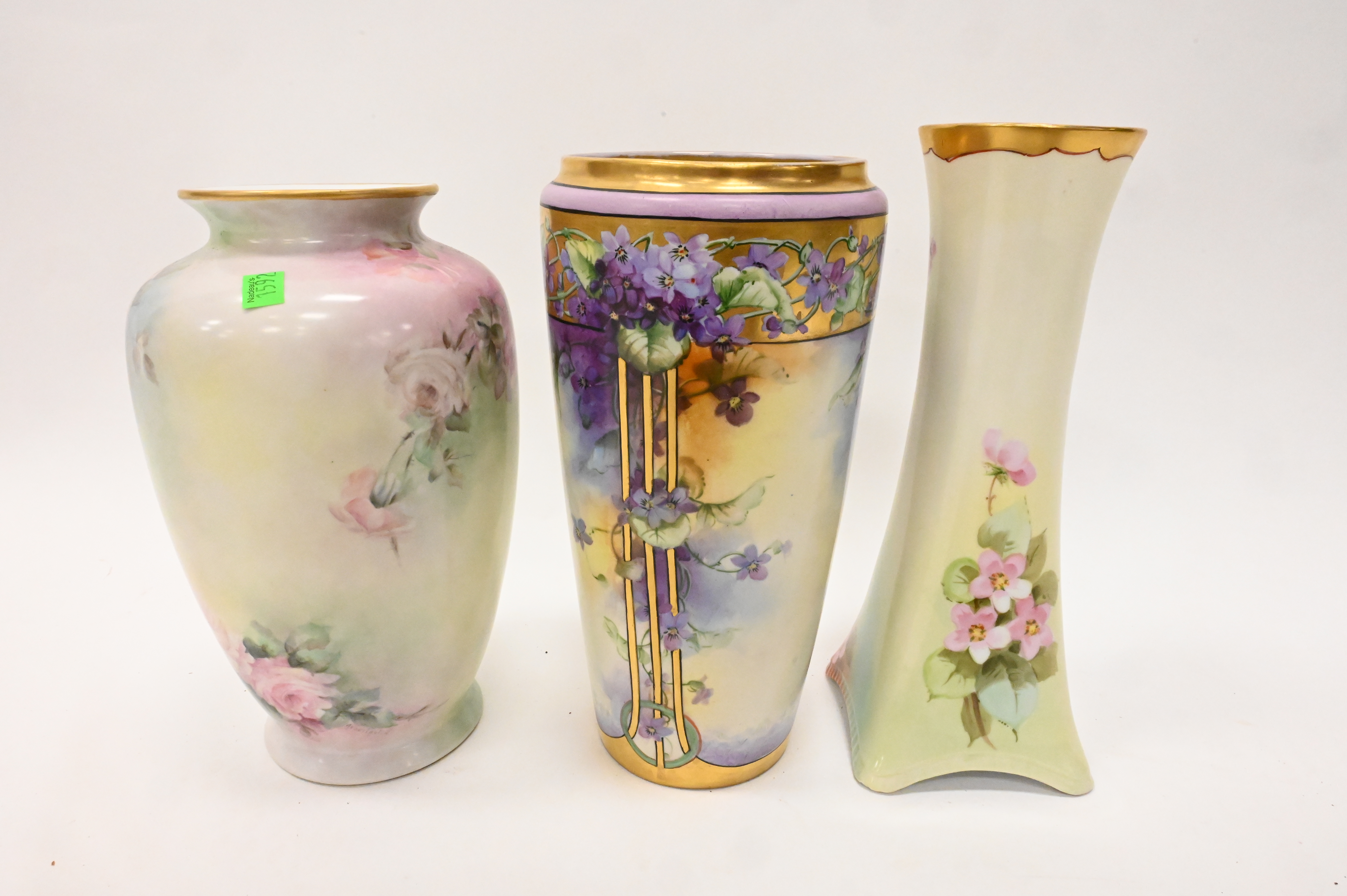 Group of Three Large Limoges Porcelain Vases, each having hand painted flowers and gilt decoration, tallest height 13 1/4 inches.