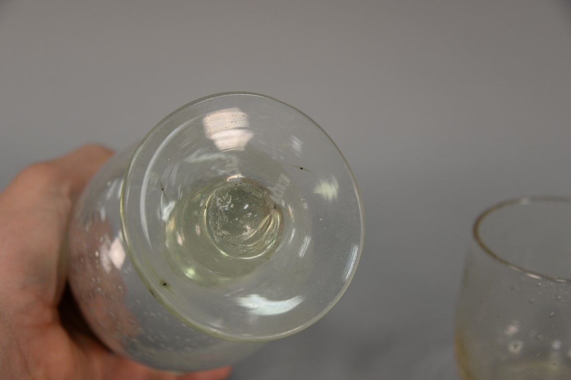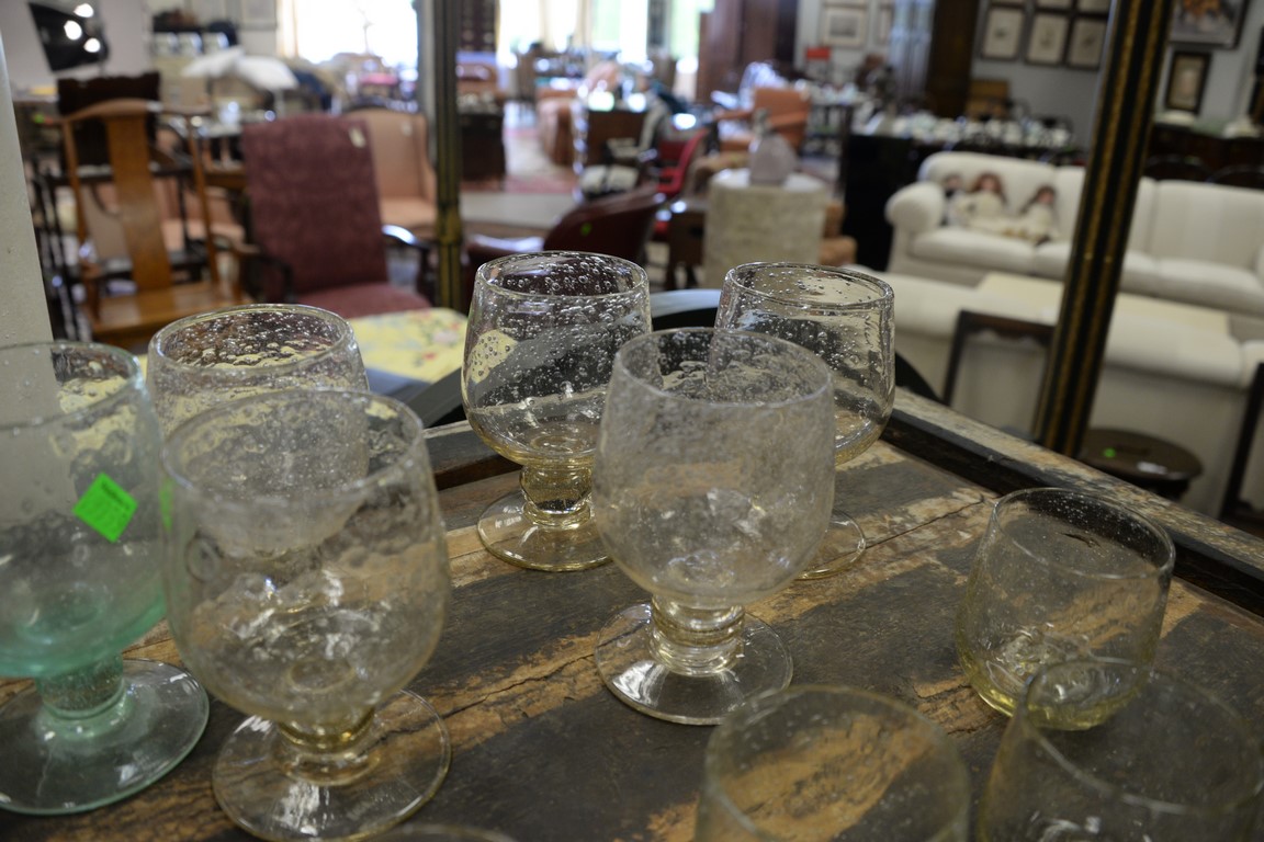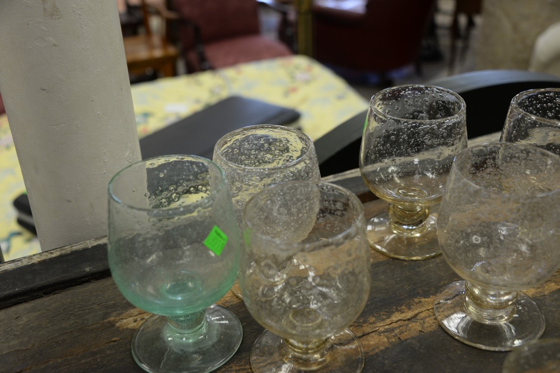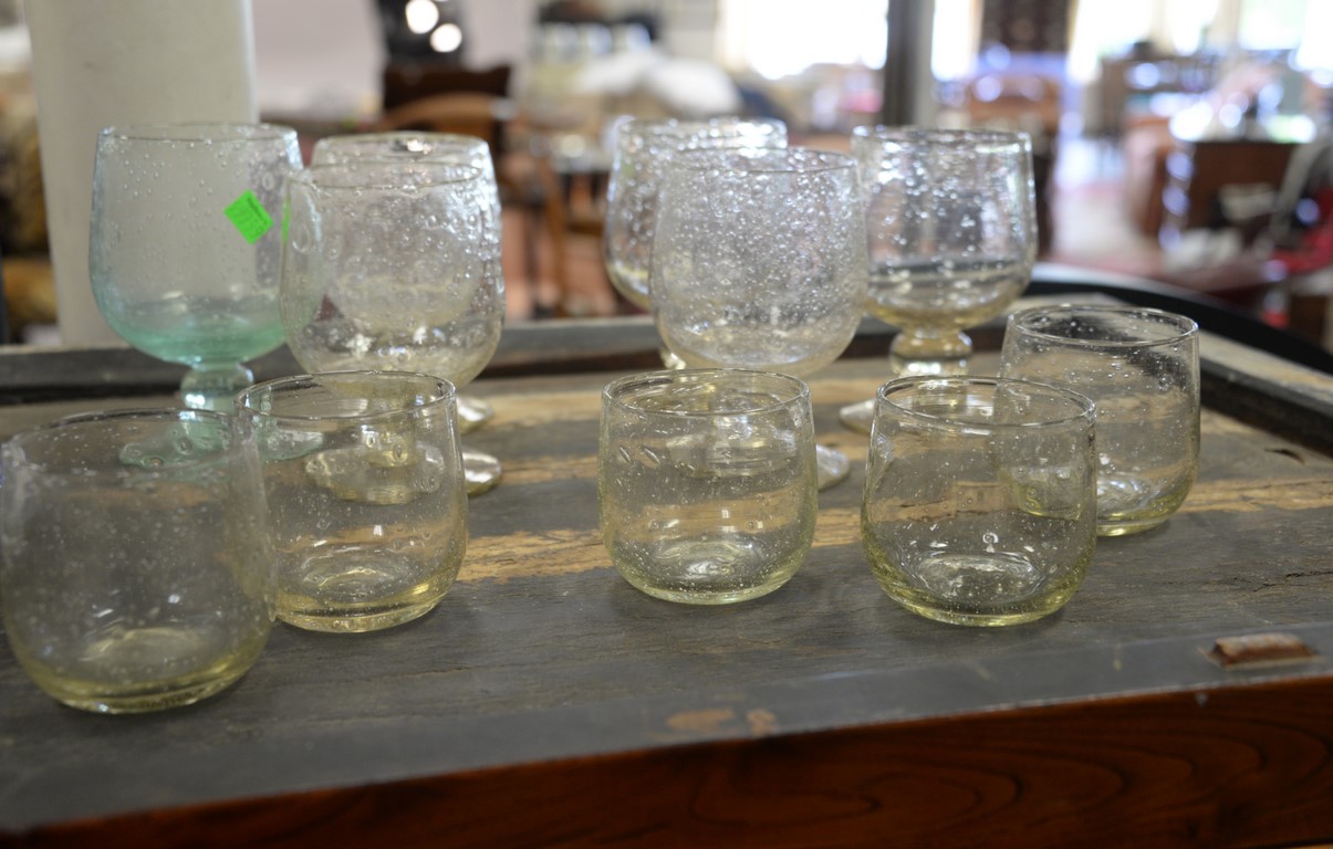 Lot 303: Group of twenty-three Biot French Bubble art glass to include 11 sangria ht. 3 1/2in. and 12 large balloon glasses ht. 6 1/4in. …