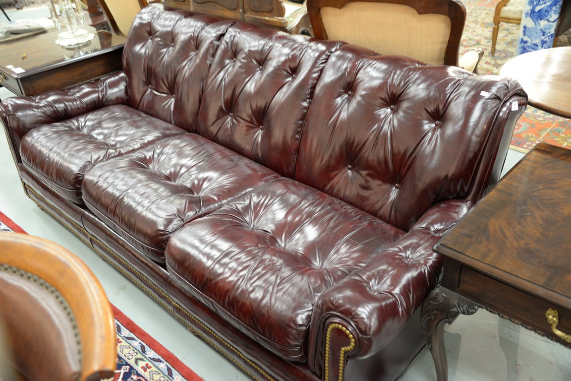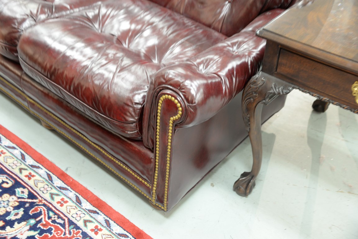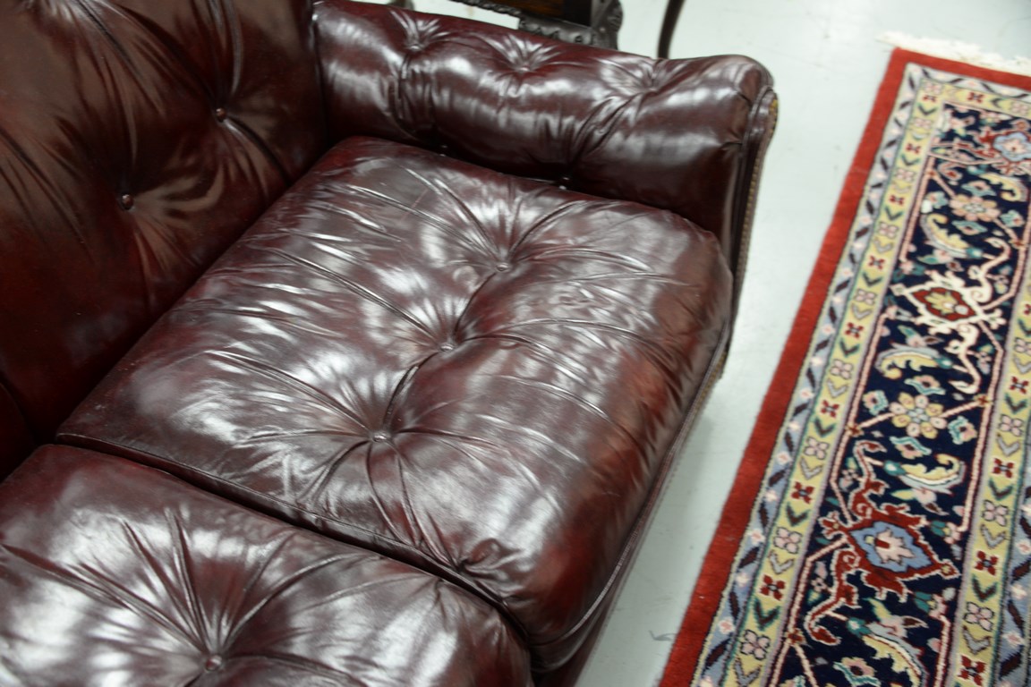 Hancock & Moore leather sofa with tufted back, arms, and seat. lg. 85 in.