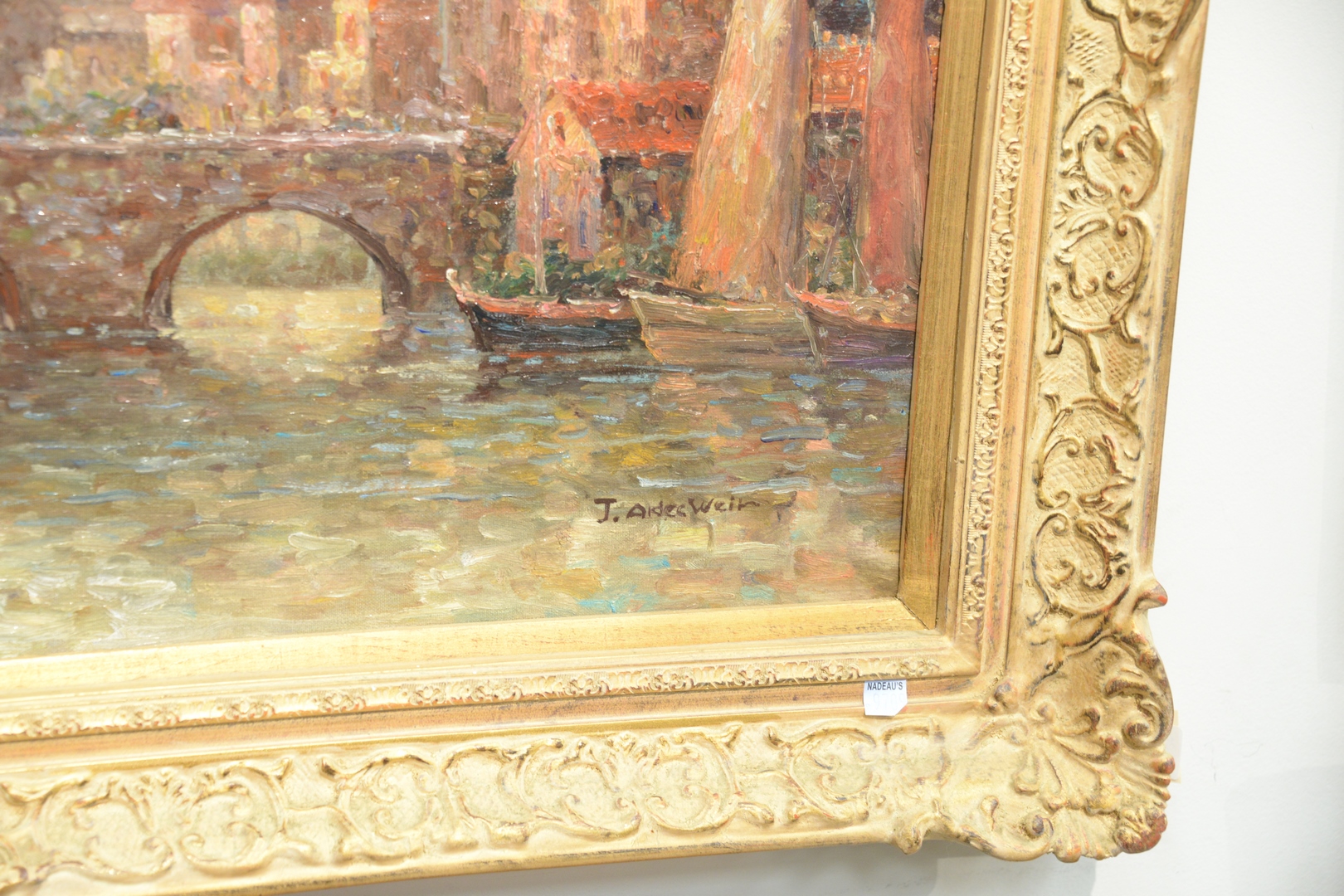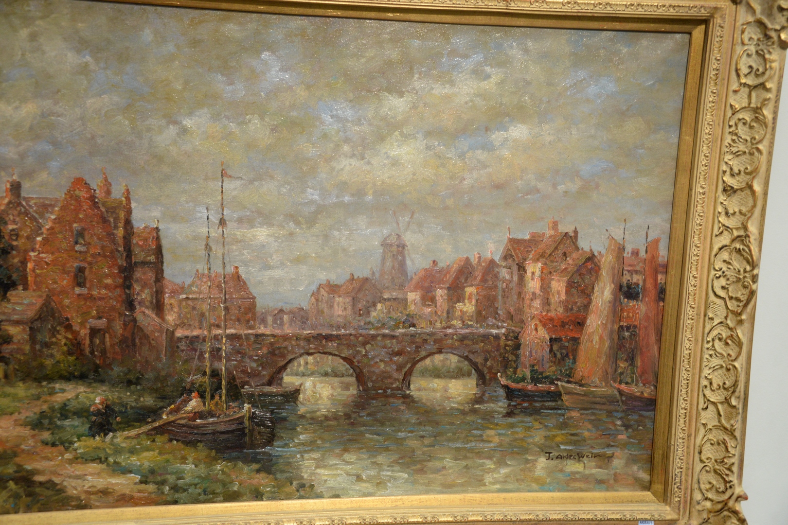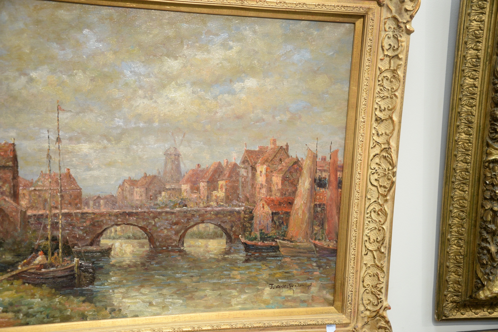 Lot 303: J. Alden Weir American, 1852 – 1919, Along the River, oil on canvas, signed lower right J. Alden Weir, 24 x 36.
