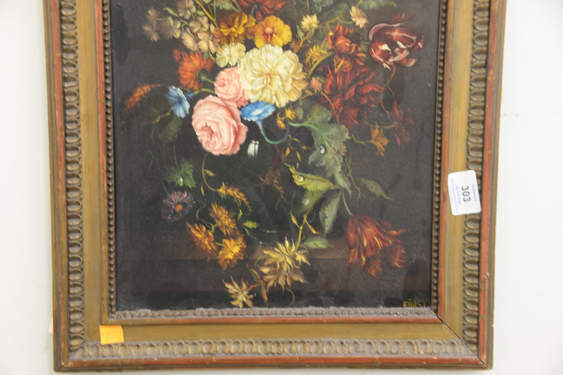 Lot 303: Joseph Furst 1947 oil on copper still life of flowers signed lower right Furst, 15 1/2 x 12.