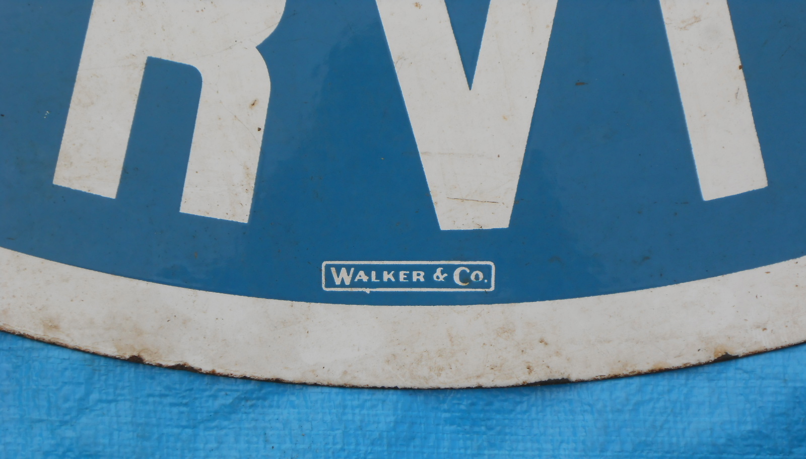 Mercedes Benz double sided porcelain, 42 inch dia, signed Walker