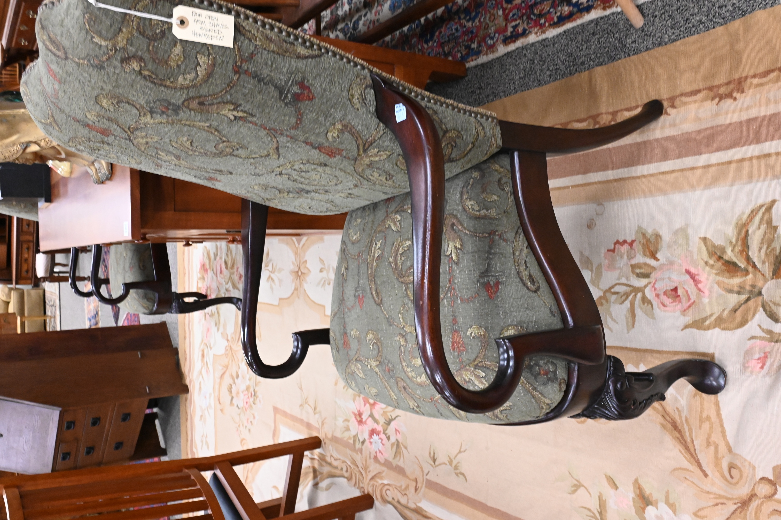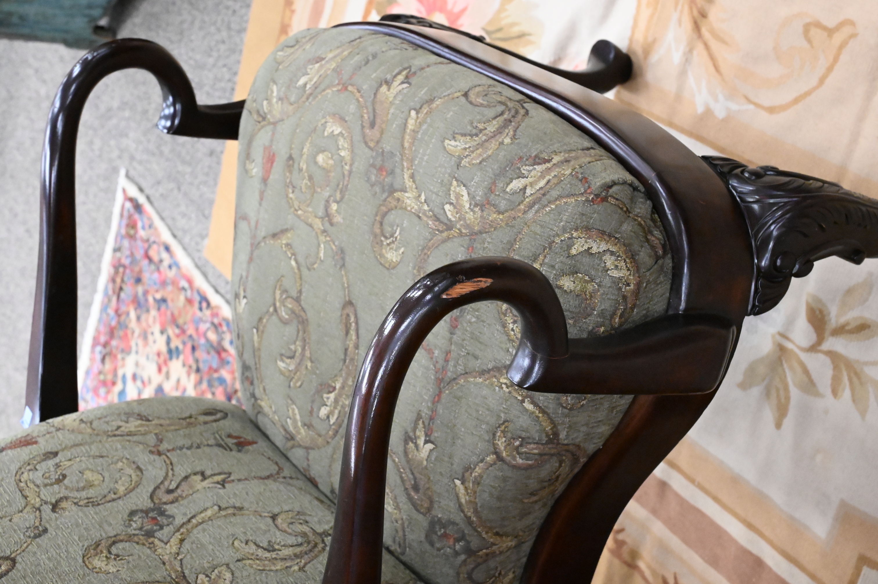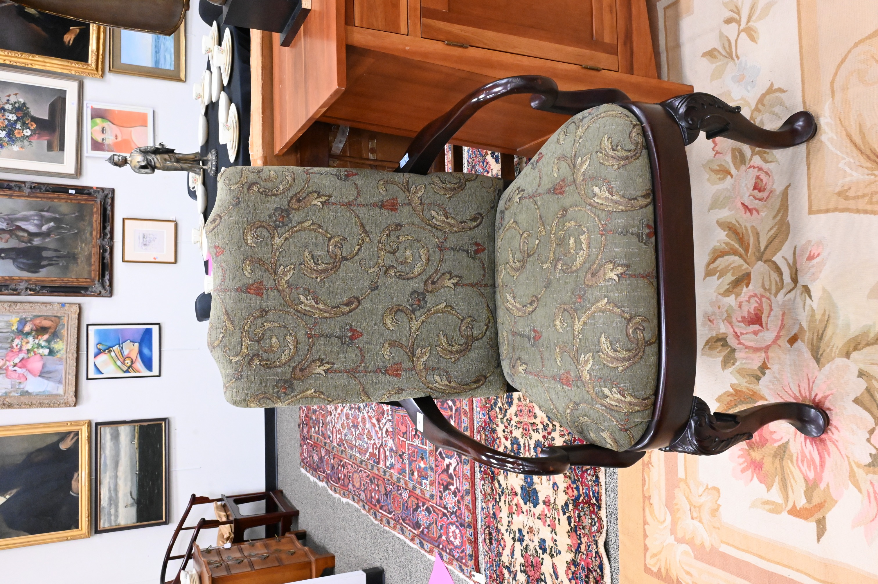 Lot 303: Pair of Henredon Upholstered Queen Anne Style Open Armchairs