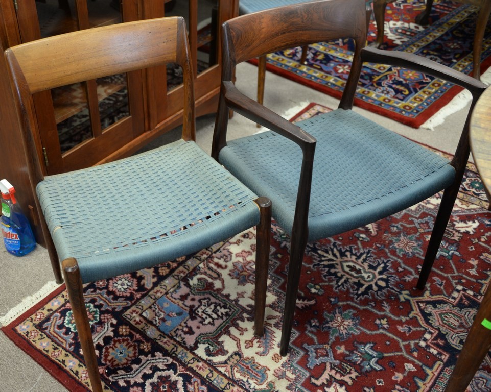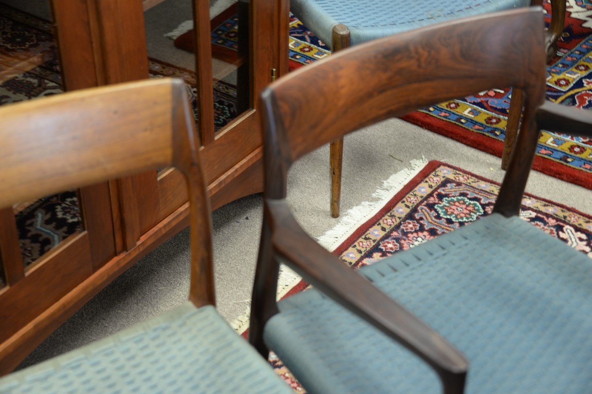 Set of eight Niels Moller rosewood dining chairs, two are armchairs.