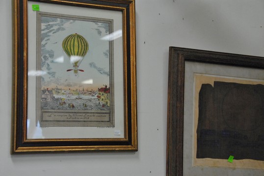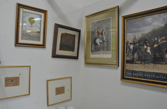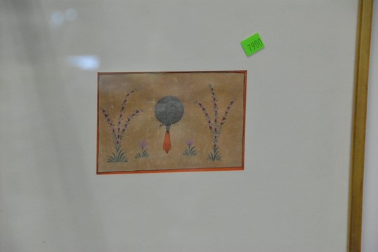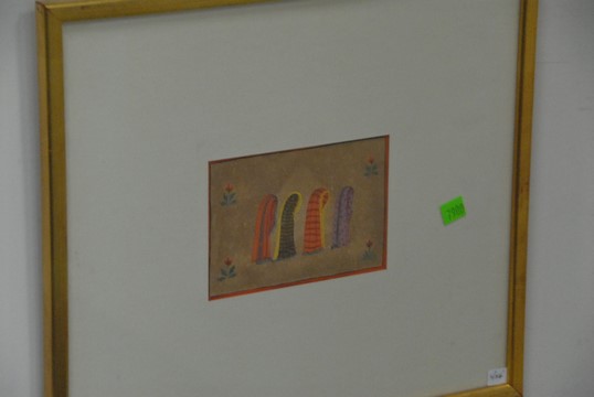 Lot 303: Six framed pieces to include two early Indian watercolors, Ross Wetzel color litho, and three prints. 4 x 6 to 12 x 11