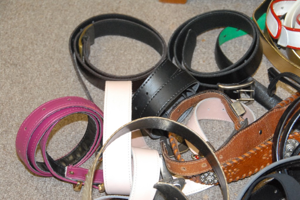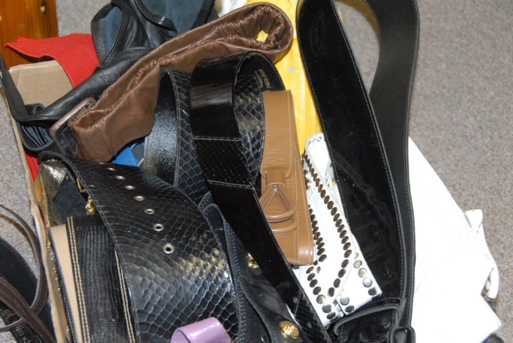 Three boxes of woman’s belts Anne Klein, Robin Kah, Truex, Jaeger, Mondi etc.