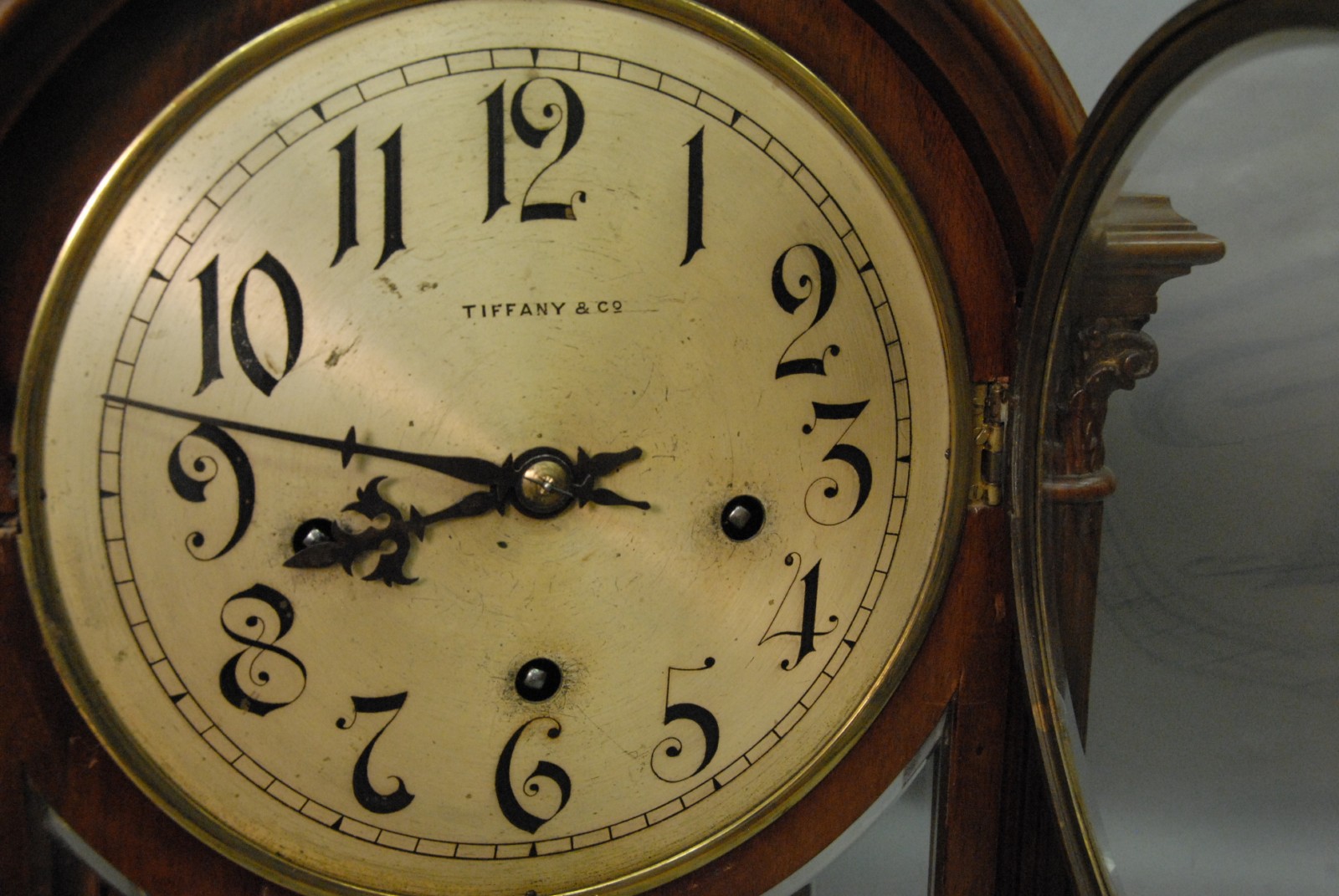 Tiffany and Company mahogany chime clock signed on works, W&H.