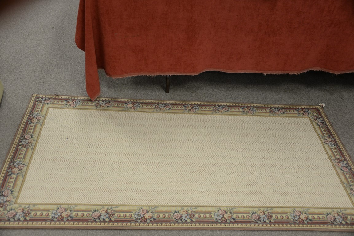 Two contemporary rugs including multicolored throw rug 4′ x 5’10 and a small runner 3′ x 6′.