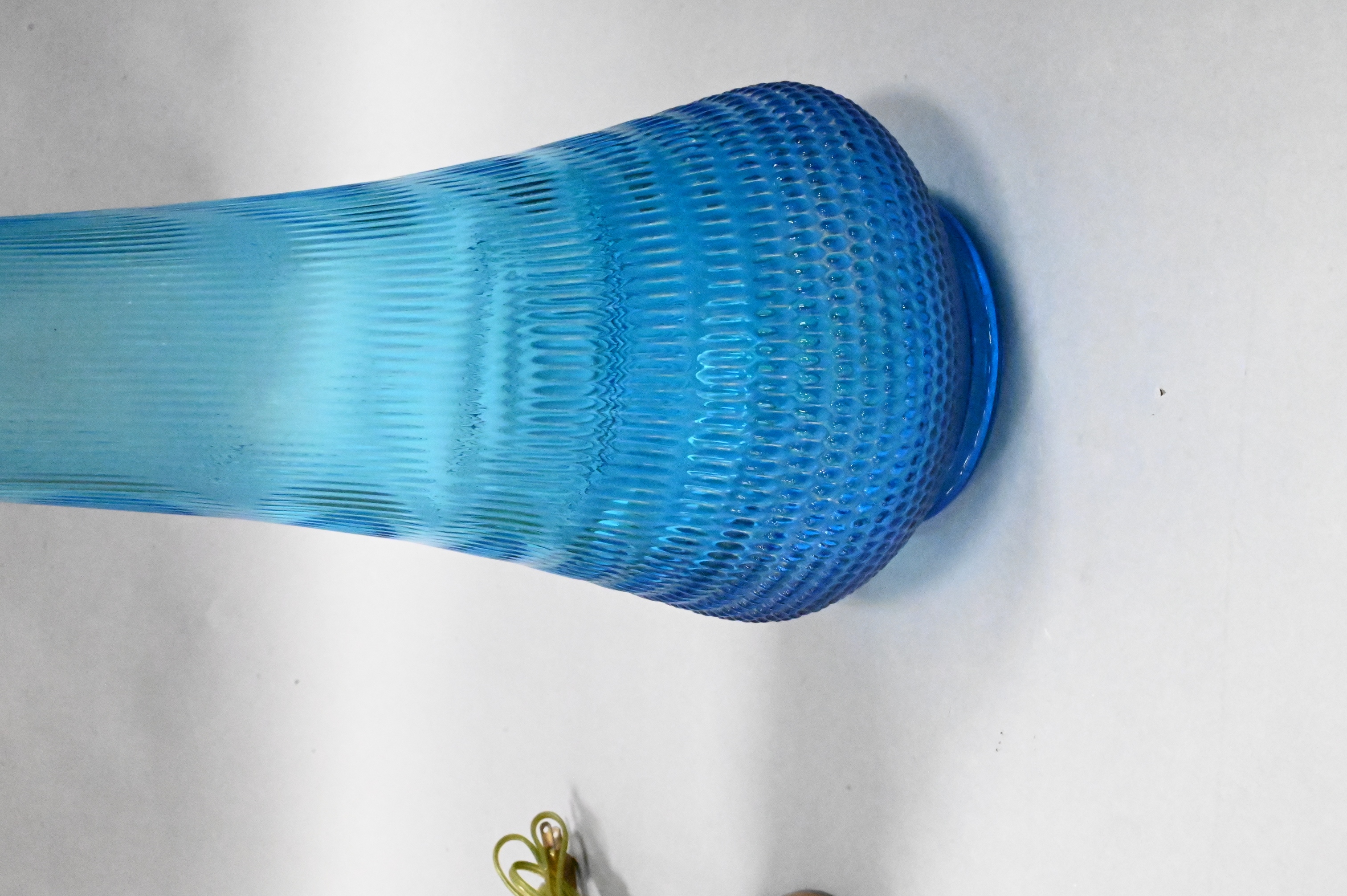 to include Le Smith blue swing glass vase in Nubby Butt pattern along with Murano table lamp having gold infused curvilinear hand blown glass on giltwood base