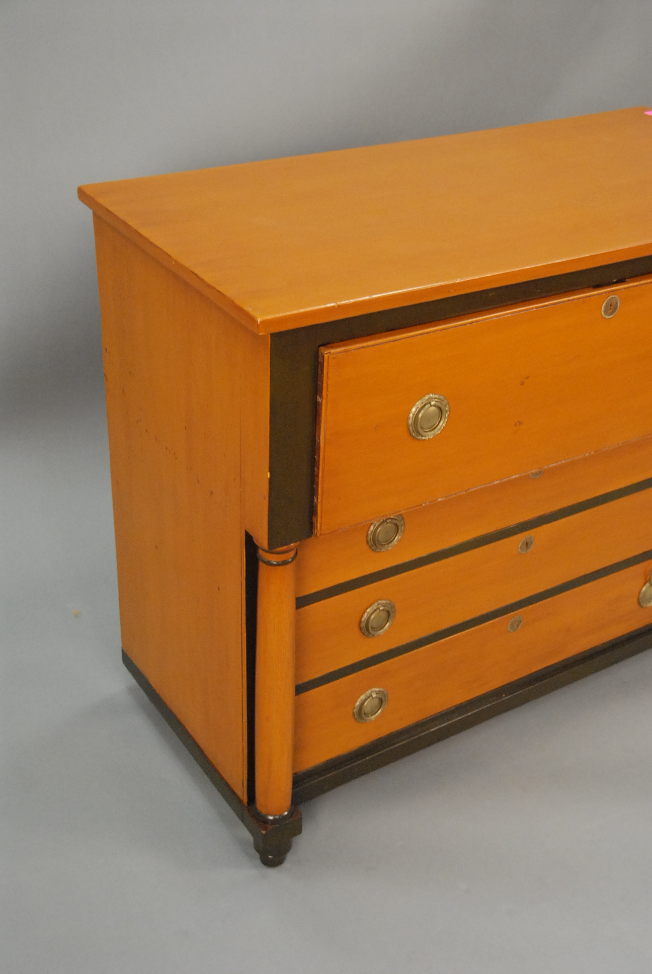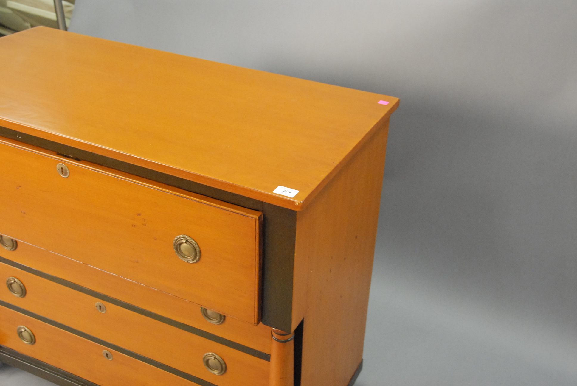 Lot 304: Biedermeier style four drawer chest having one long drawer over three small drawers flanked by columns, ht. 35in. wd. 42in.