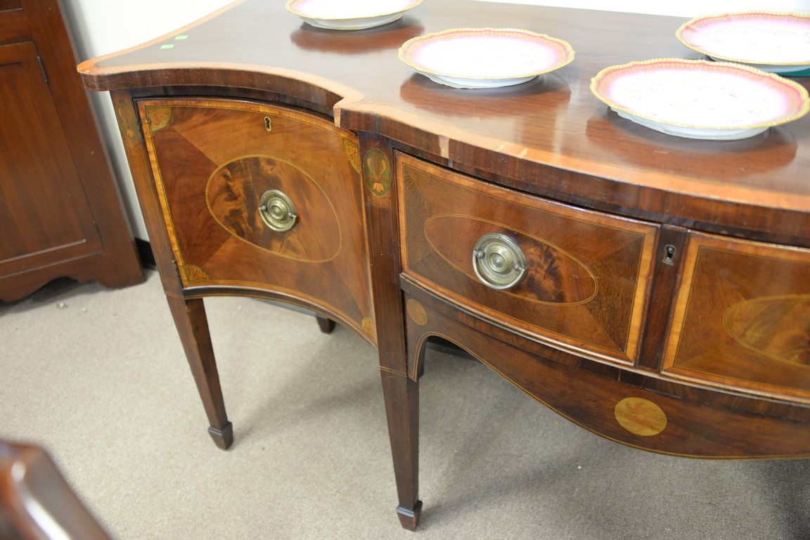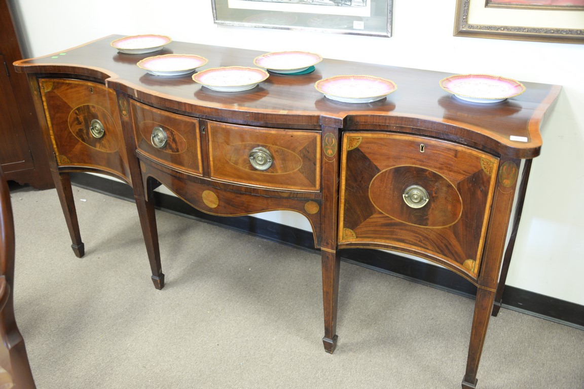 George III mahogany sideboard with panel and banded inlays, circa 1800. ht. 35in., wd. 73in.