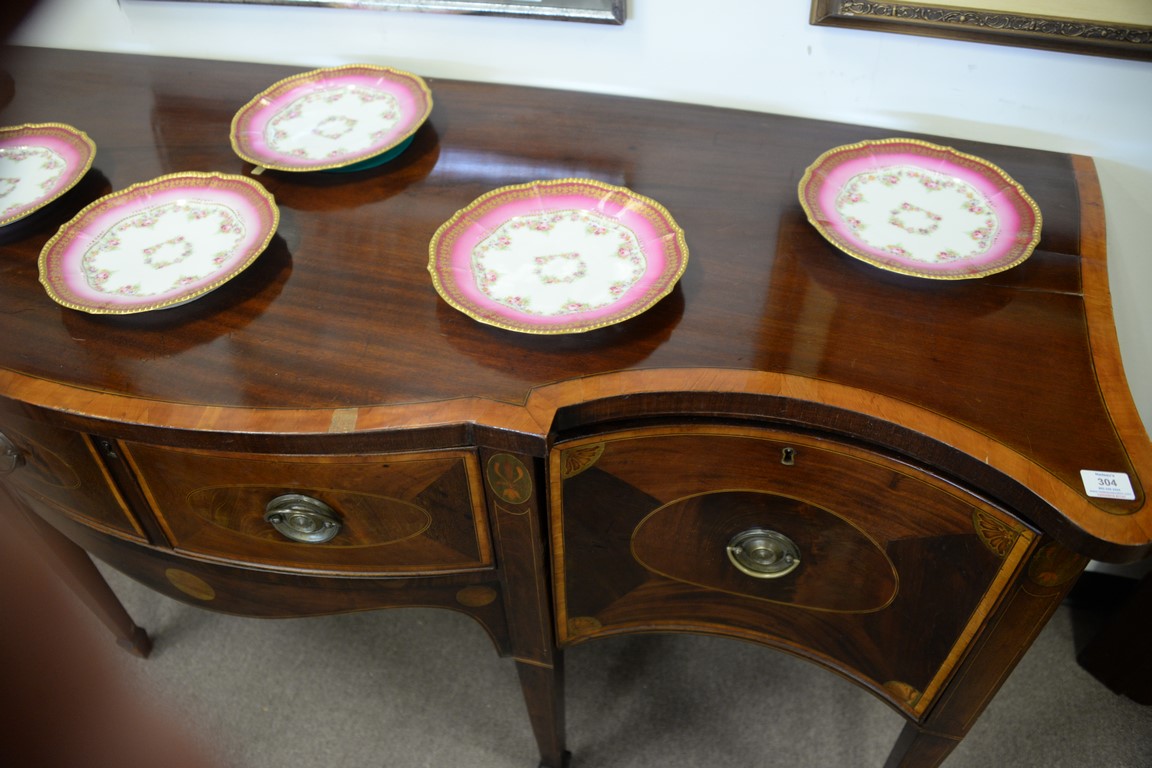 Lot 304: George III mahogany sideboard with panel and banded inlays, circa 1800. ht. 35in., wd. 73in.