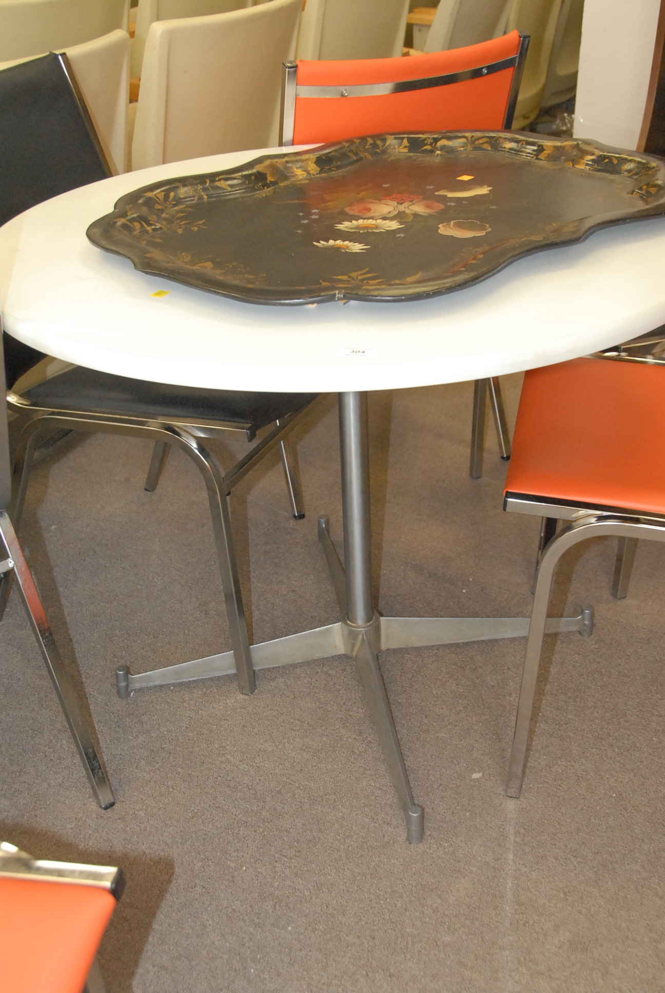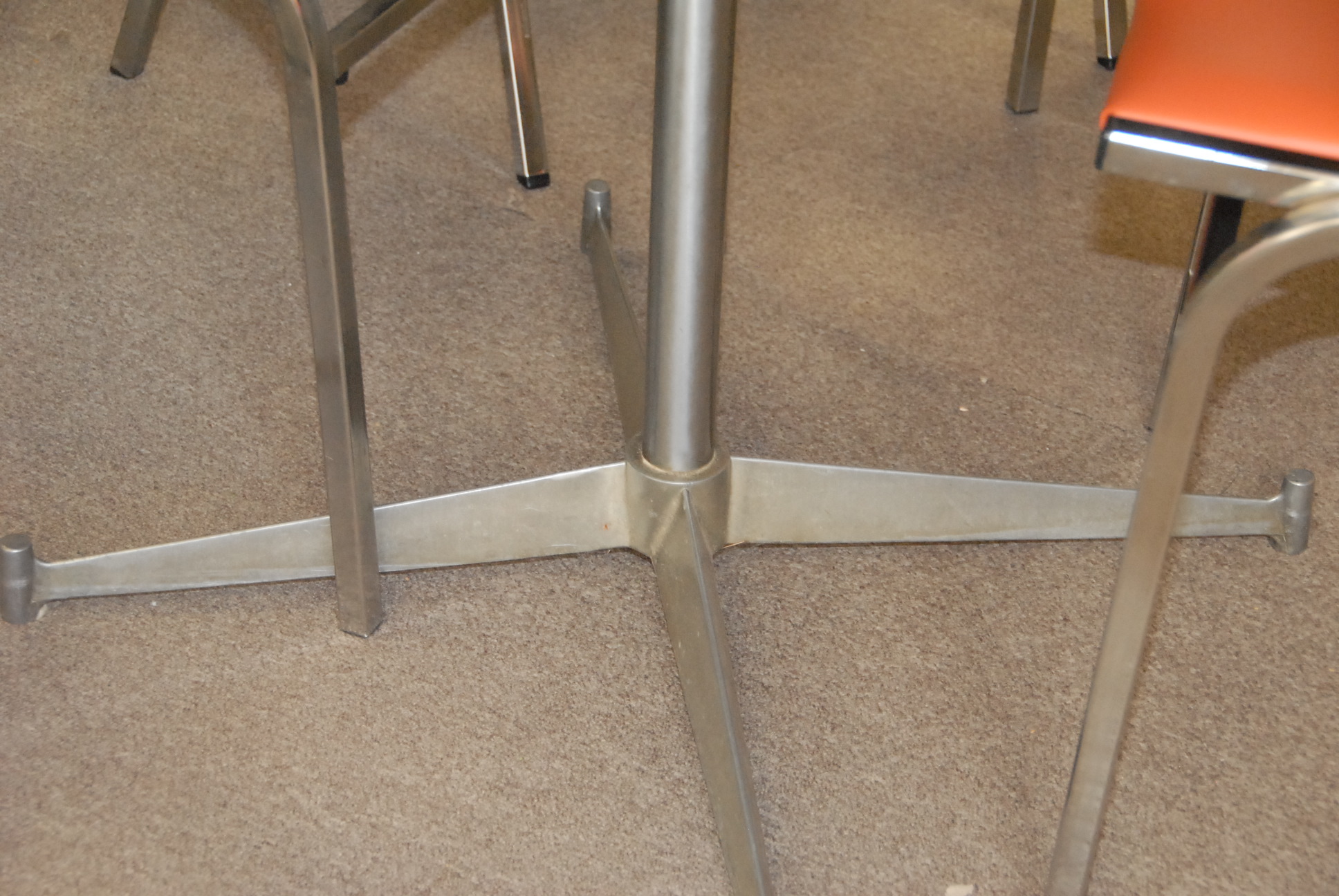 Lot 304: Paul McCobb for Directional Contract Furniture dinette table with a 36 round Formica top set on a metal single pedestal with four f…