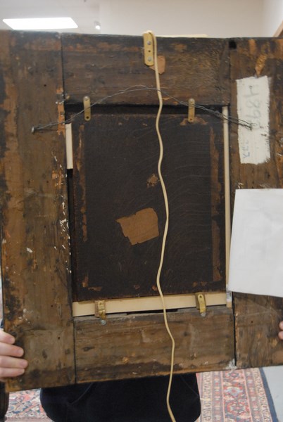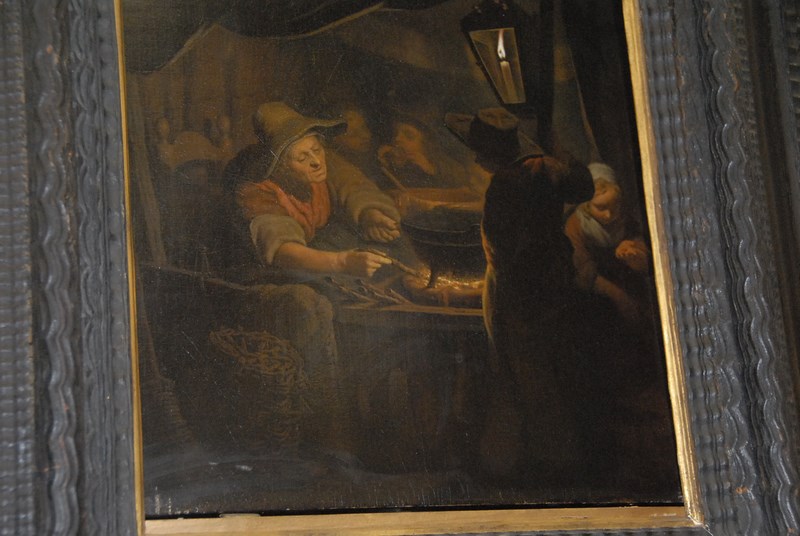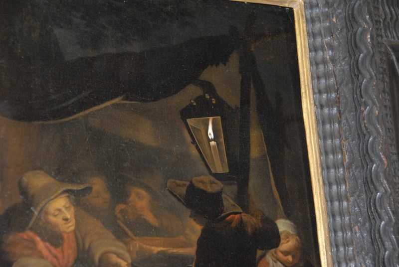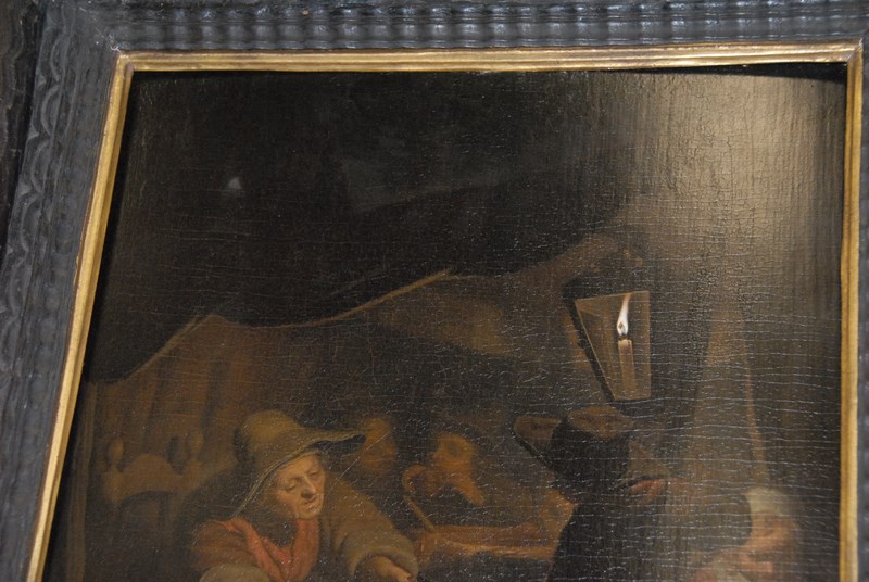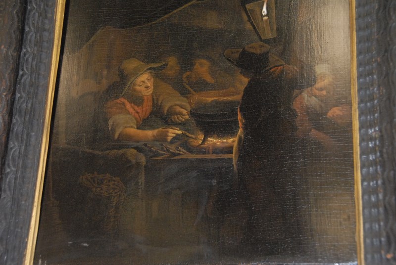 Lot 304: Pieter Christofle Wonder 1780-1852 INTERIOR, WARMING THE POT oil on panel signed bottom center P. C. Wonder original receipt with copy of check stub 15 1/4 x 12 3/4 Provenance: From Post Road Gallery