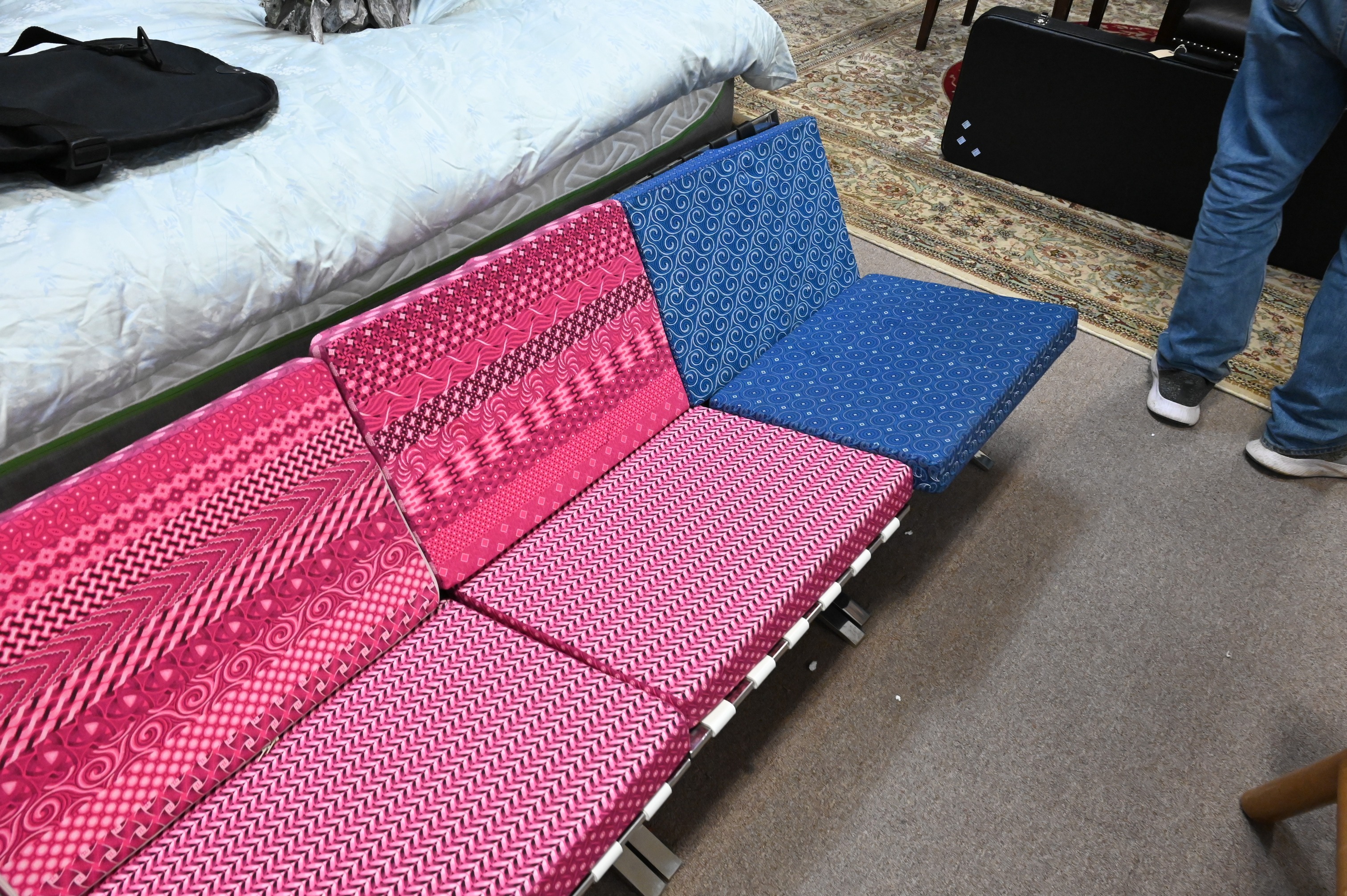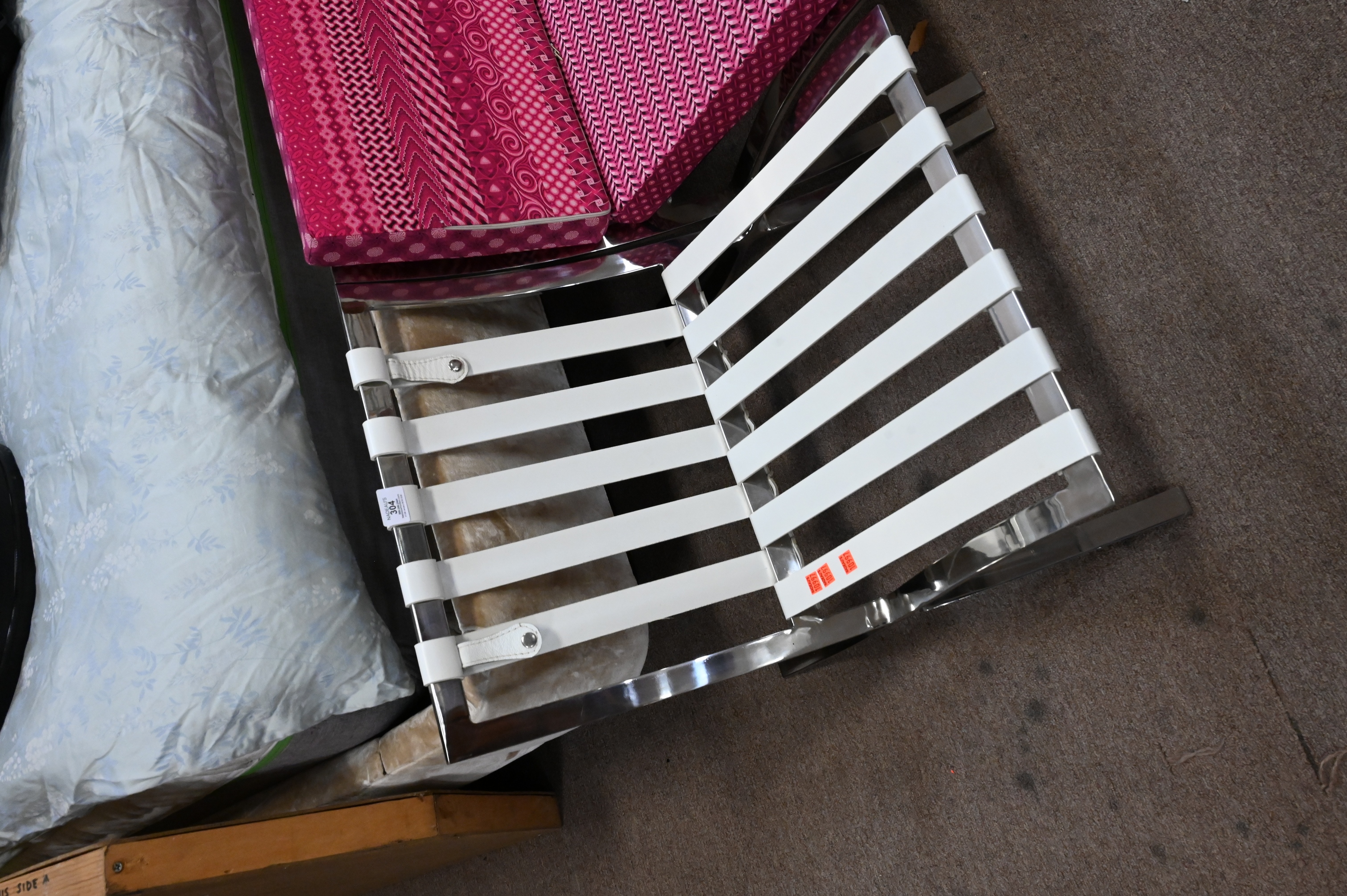 one having black strapping and three having white strapping, unmarked