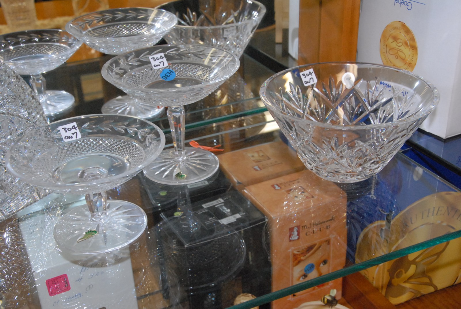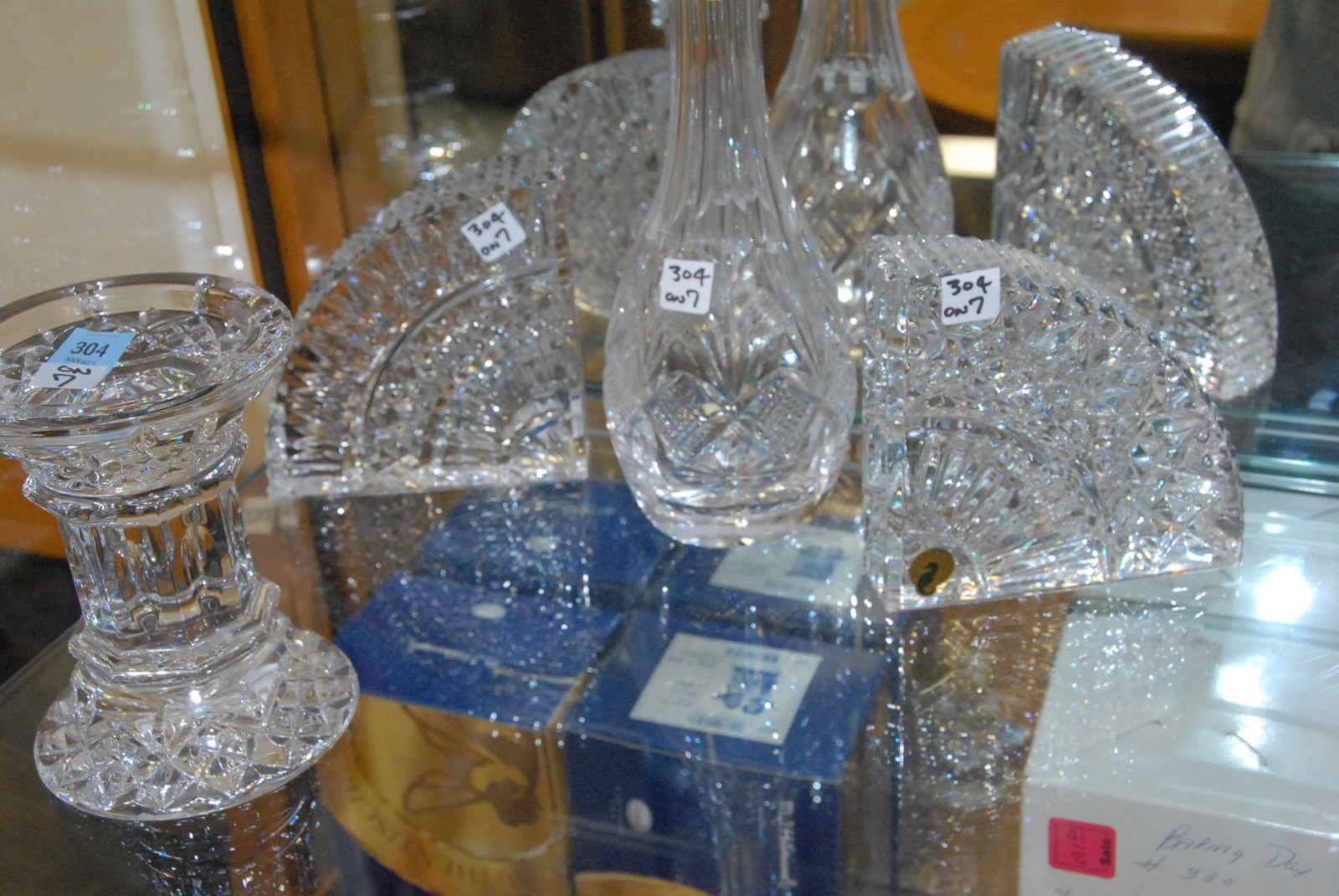 Seven piece lot of Waterford crystal including decanter, two compotes, a bowl, and a stand