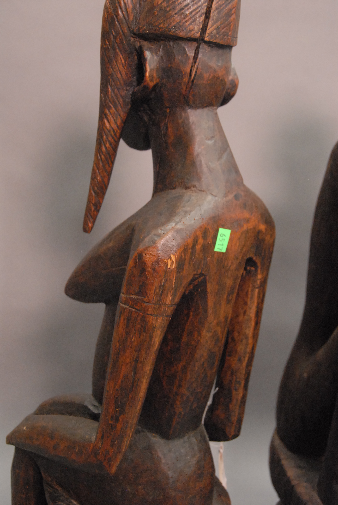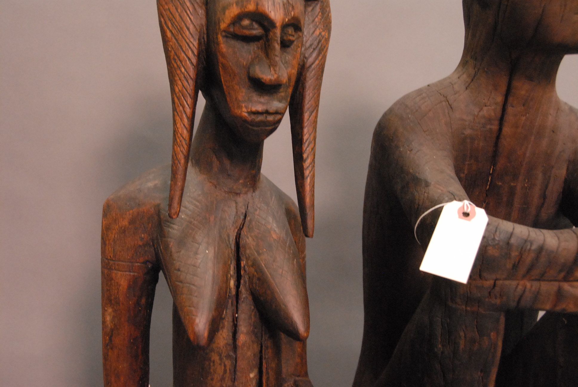 Two carved figures Bamana female figure and a Philippine Bulul, hts. 32 and 33.
