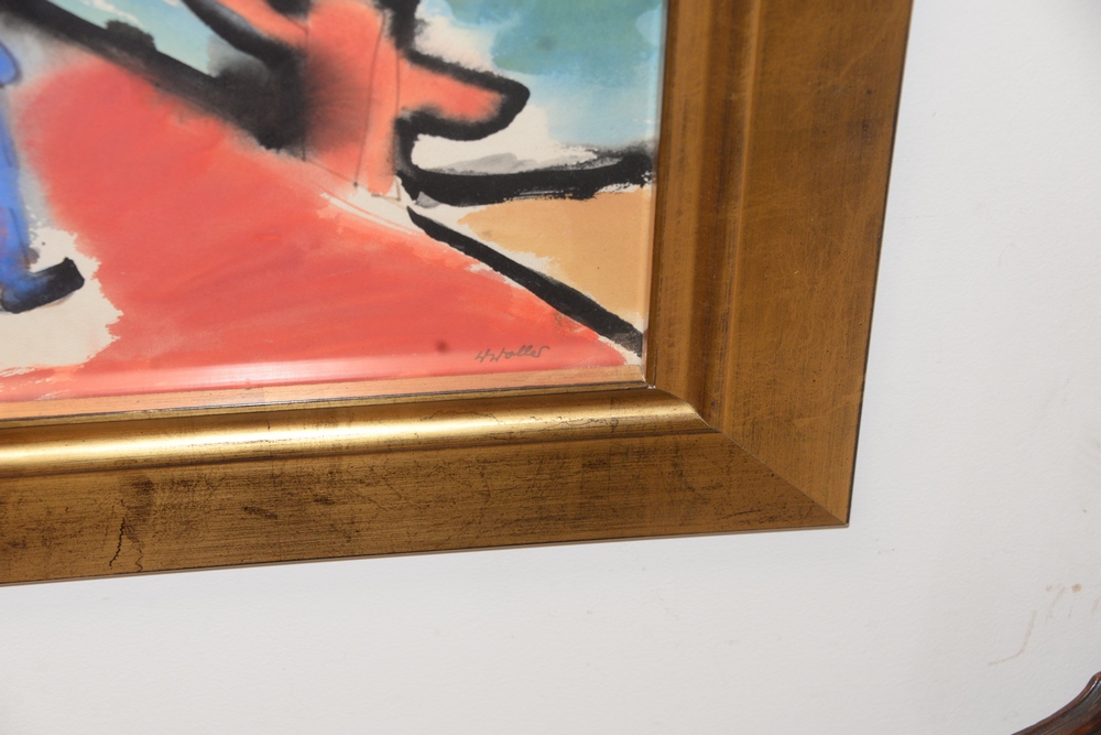 Wilhelm Woller (German/American, 1907-1954), abstract view down a street, watercolor on paper, signed lower right “WWoller”, sight size 21 1/2″ x 29 1/2″.