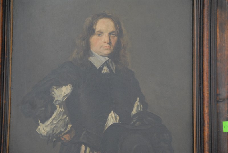 19th century STANDING FIGURE OF A MAN oil on board unsigned 15 1/2 x 12