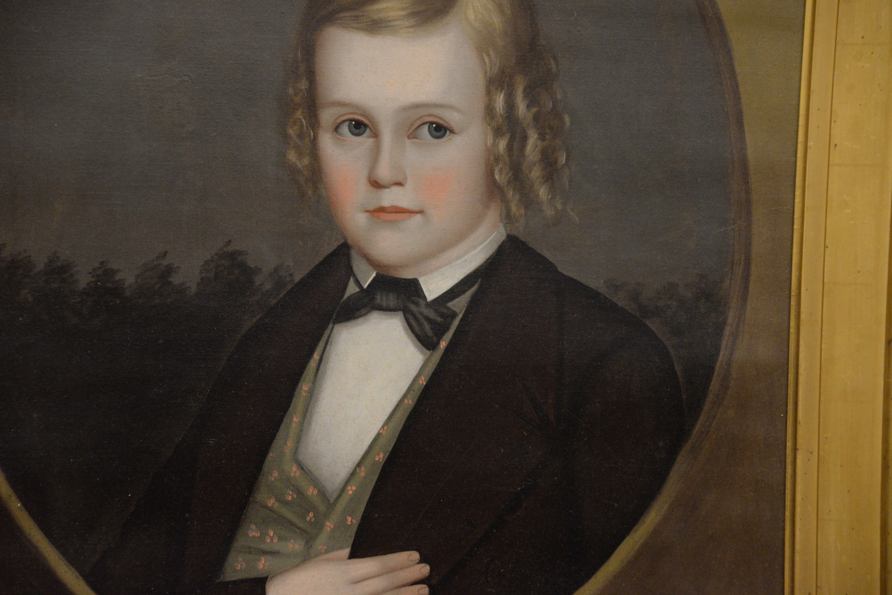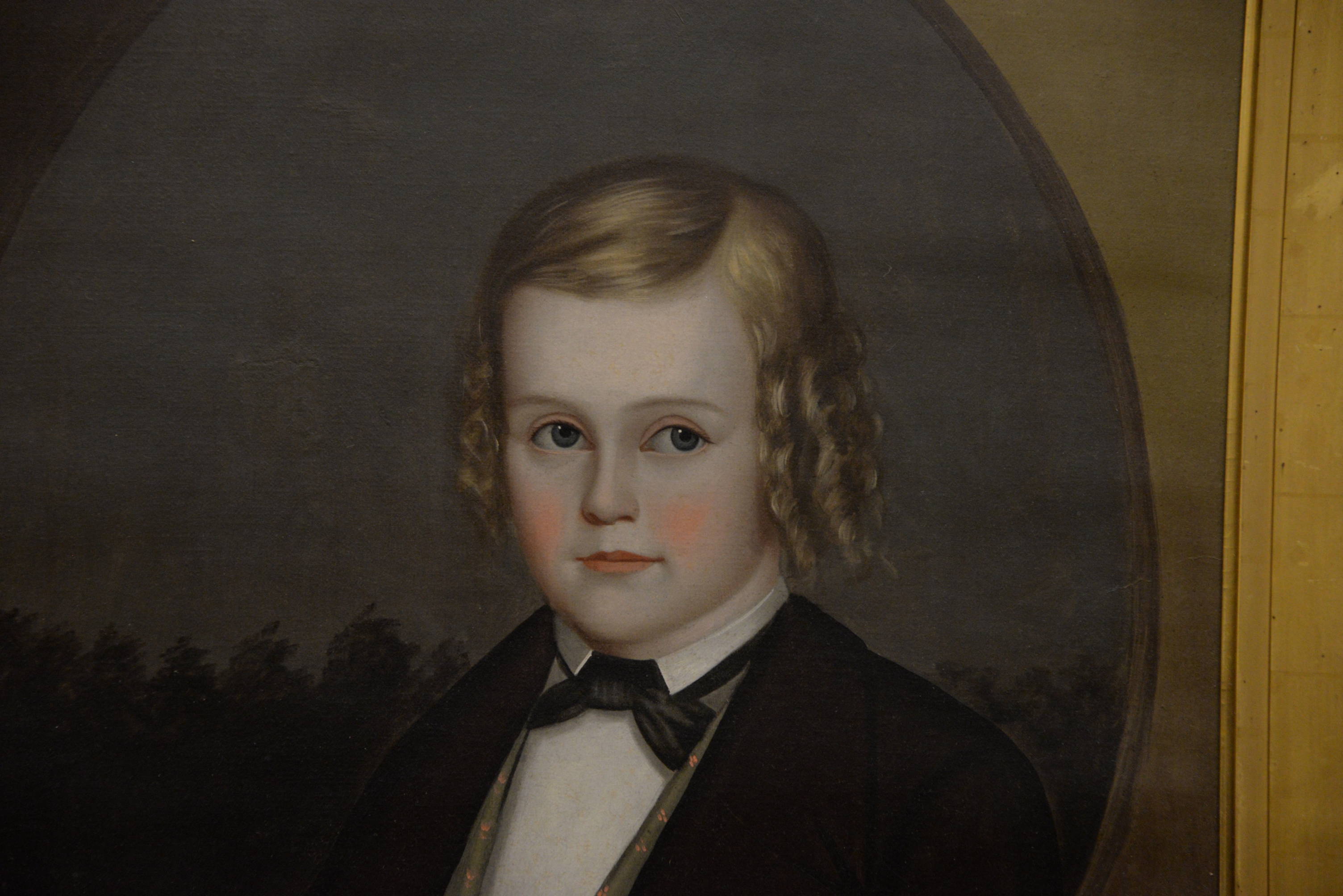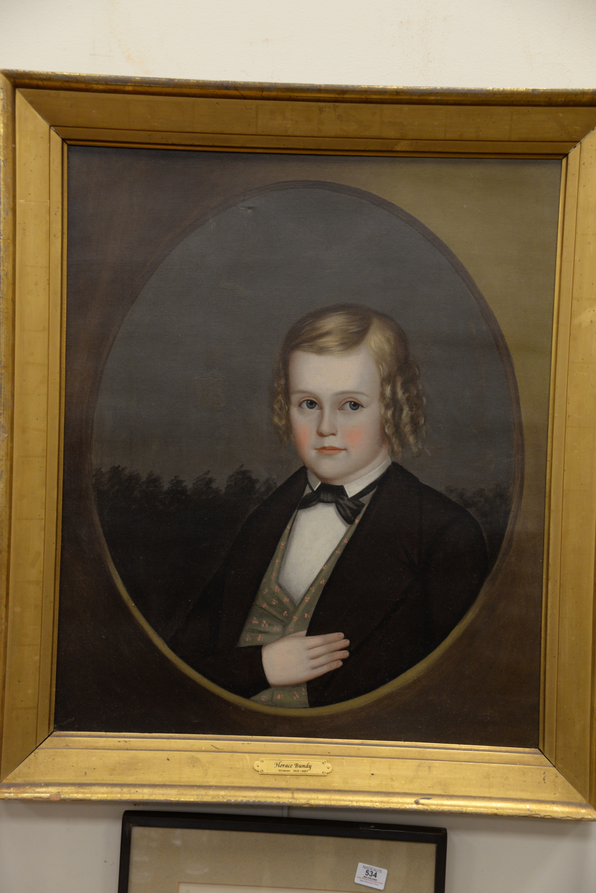 Attributed to Horace Bundy (Vermont 1814 – 1883) Oval Portrait young blonde boy oil on canvas, relined unsigned 30″ x 24 1/2″.