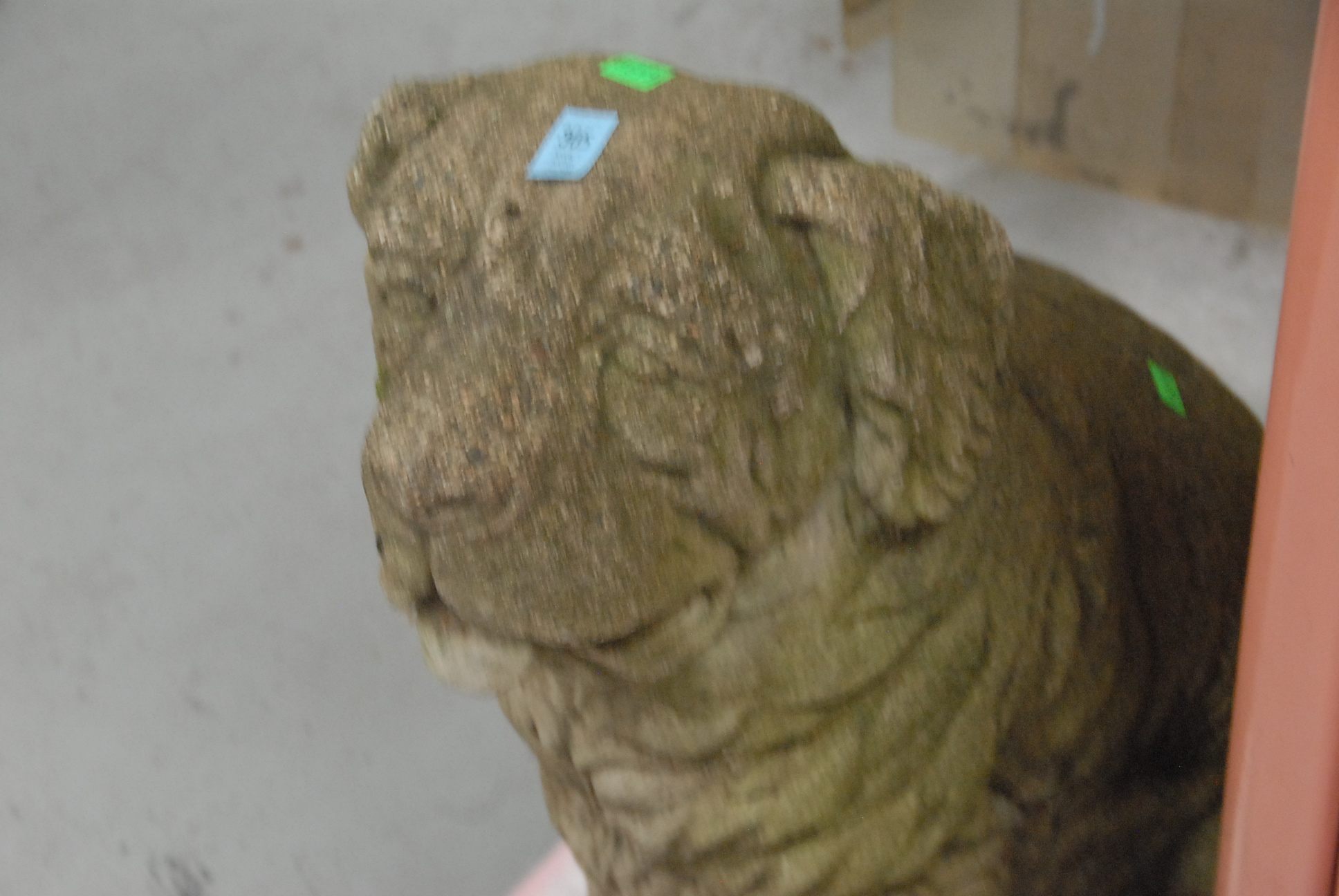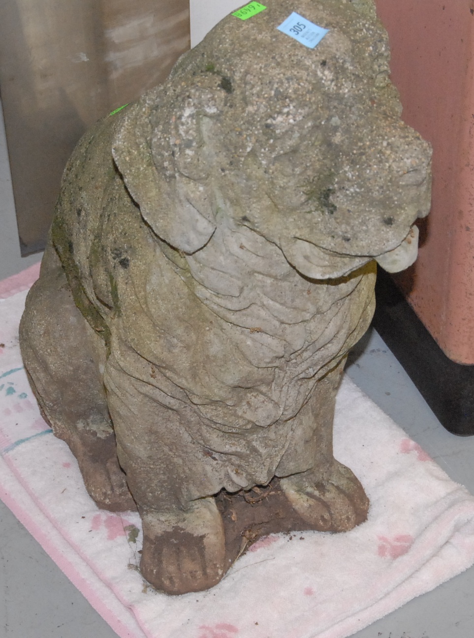 Cement outdoor Newfoundland dog figure.