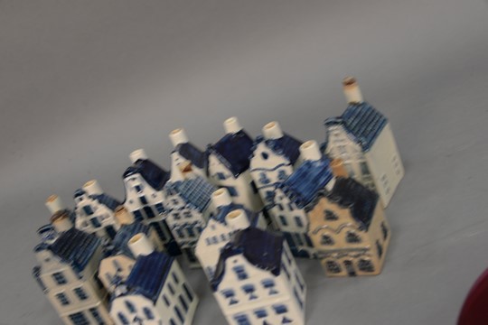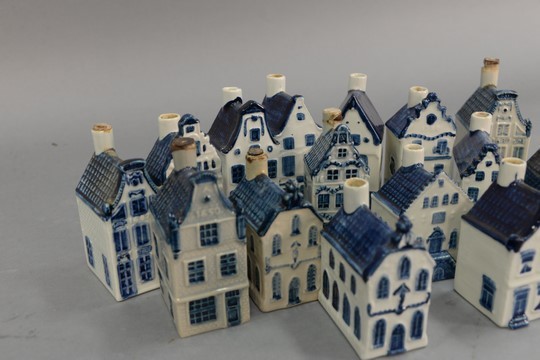 Lot 305: Fifteen Simon Rynbende blue and white miniature liquor houses marked KLM Royal Delft. 3in. to 4in.