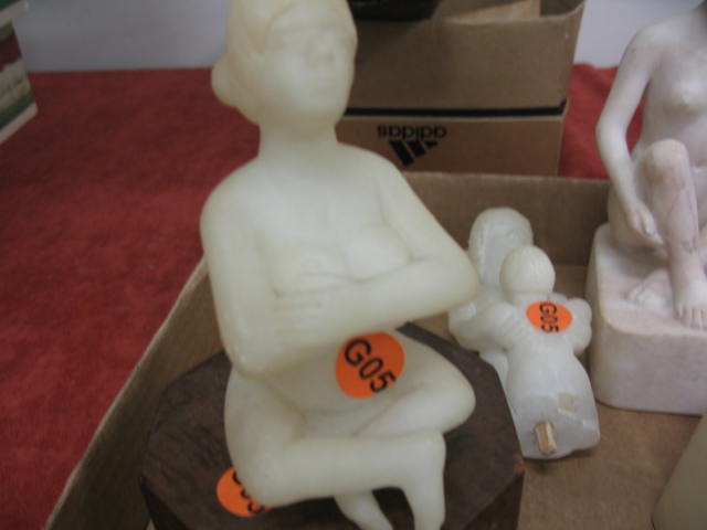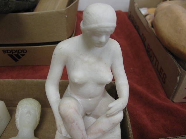 Group of marble and alabaster busts, figures, etc along with two clarinets