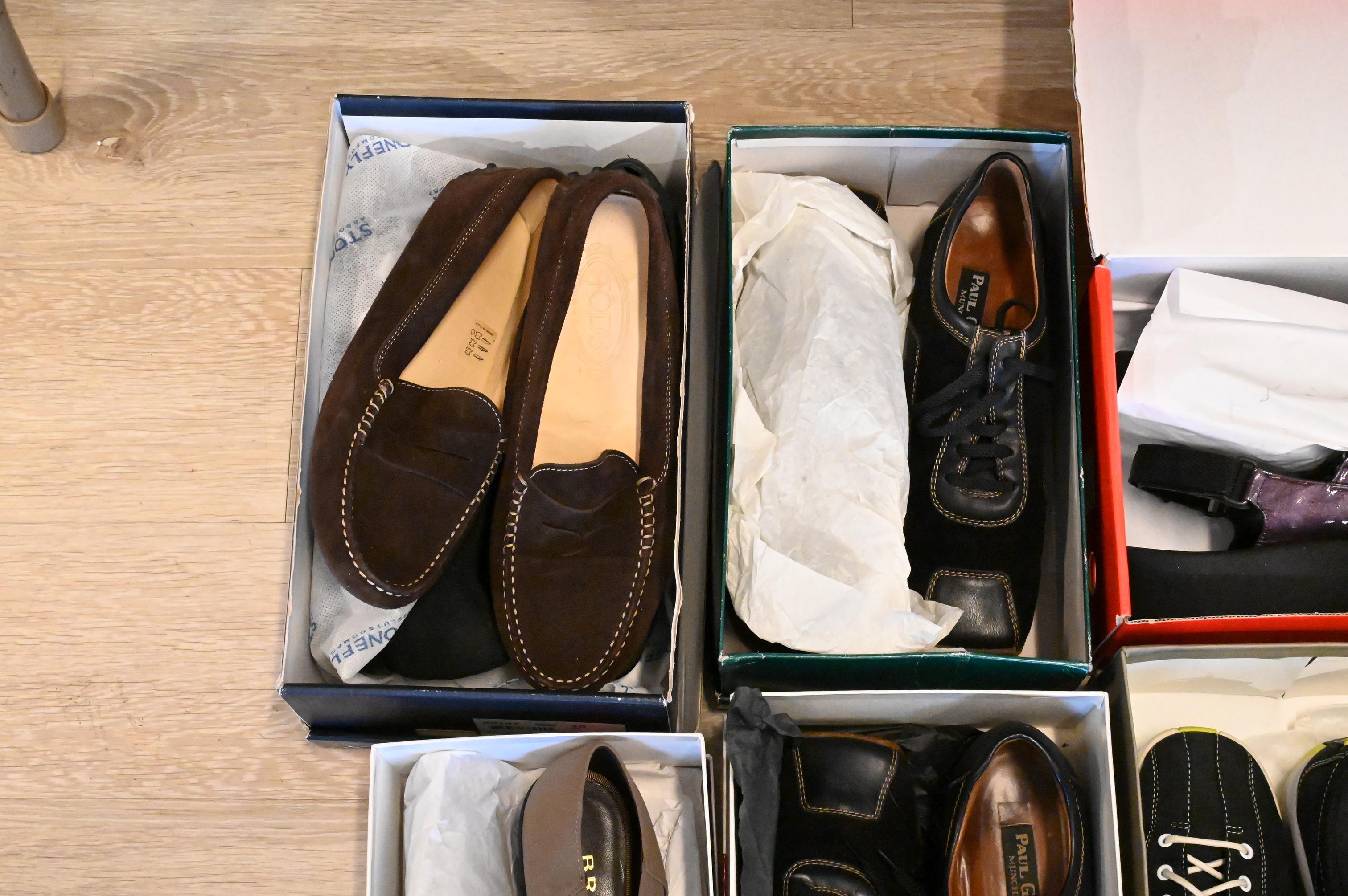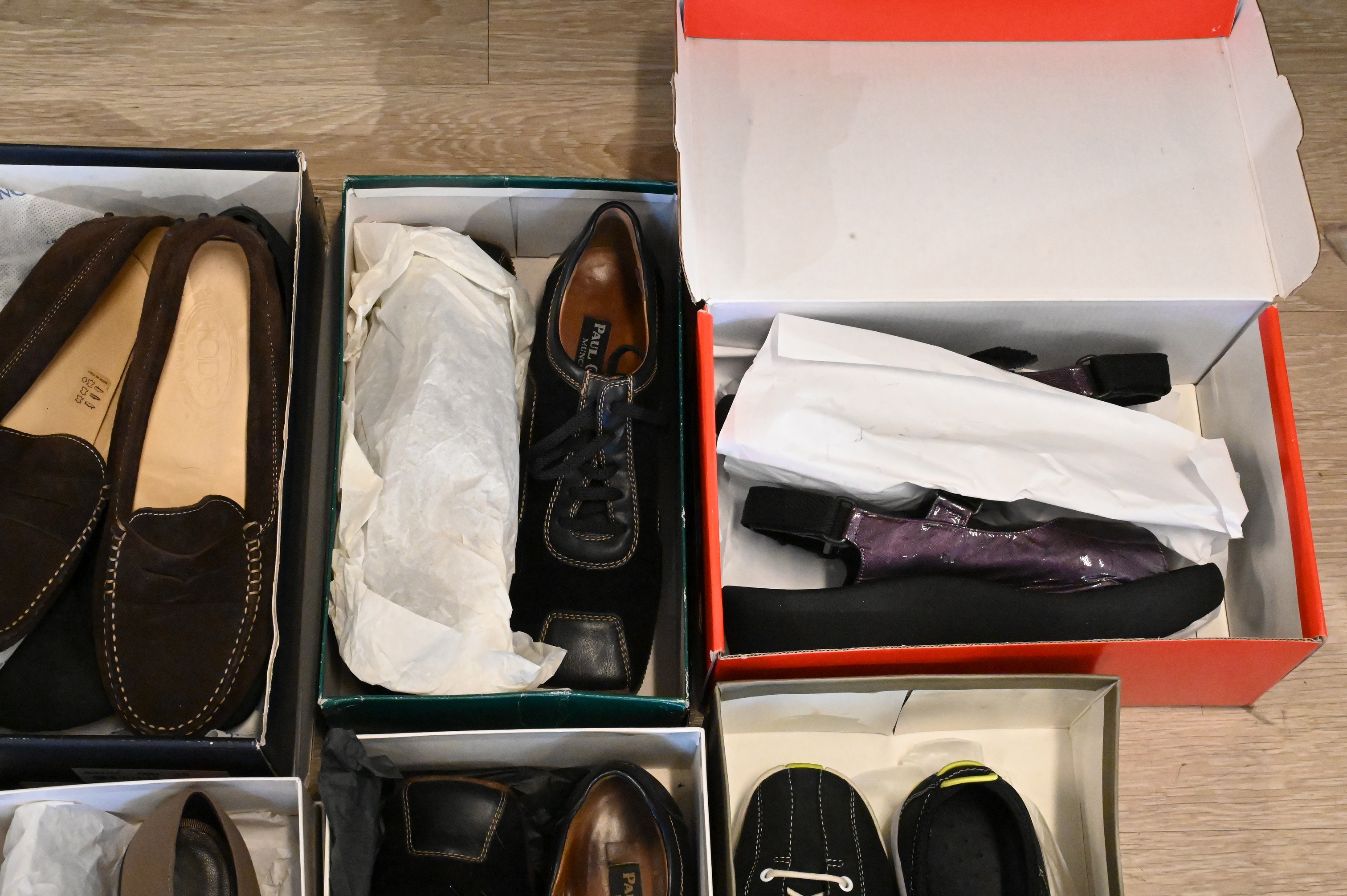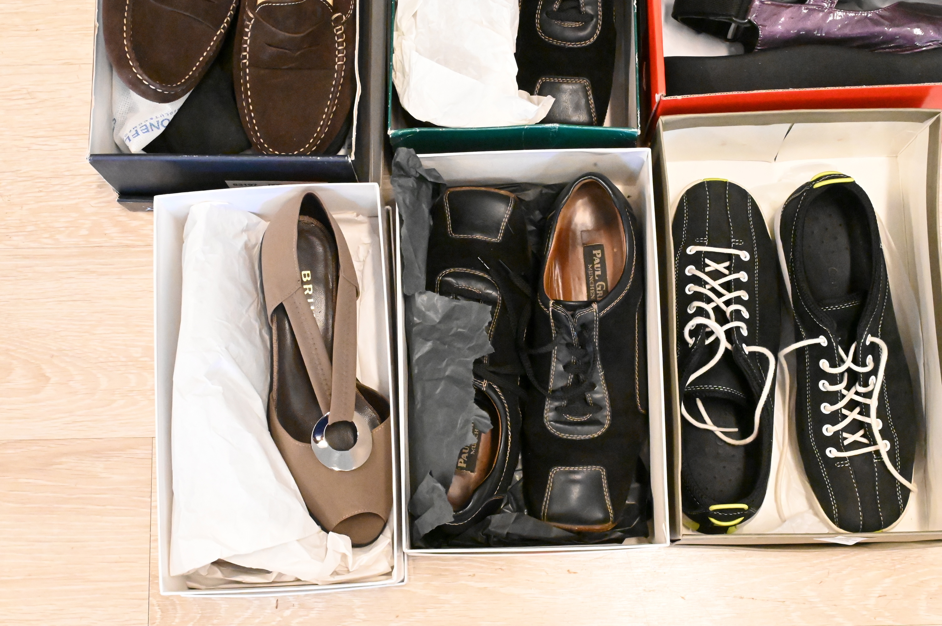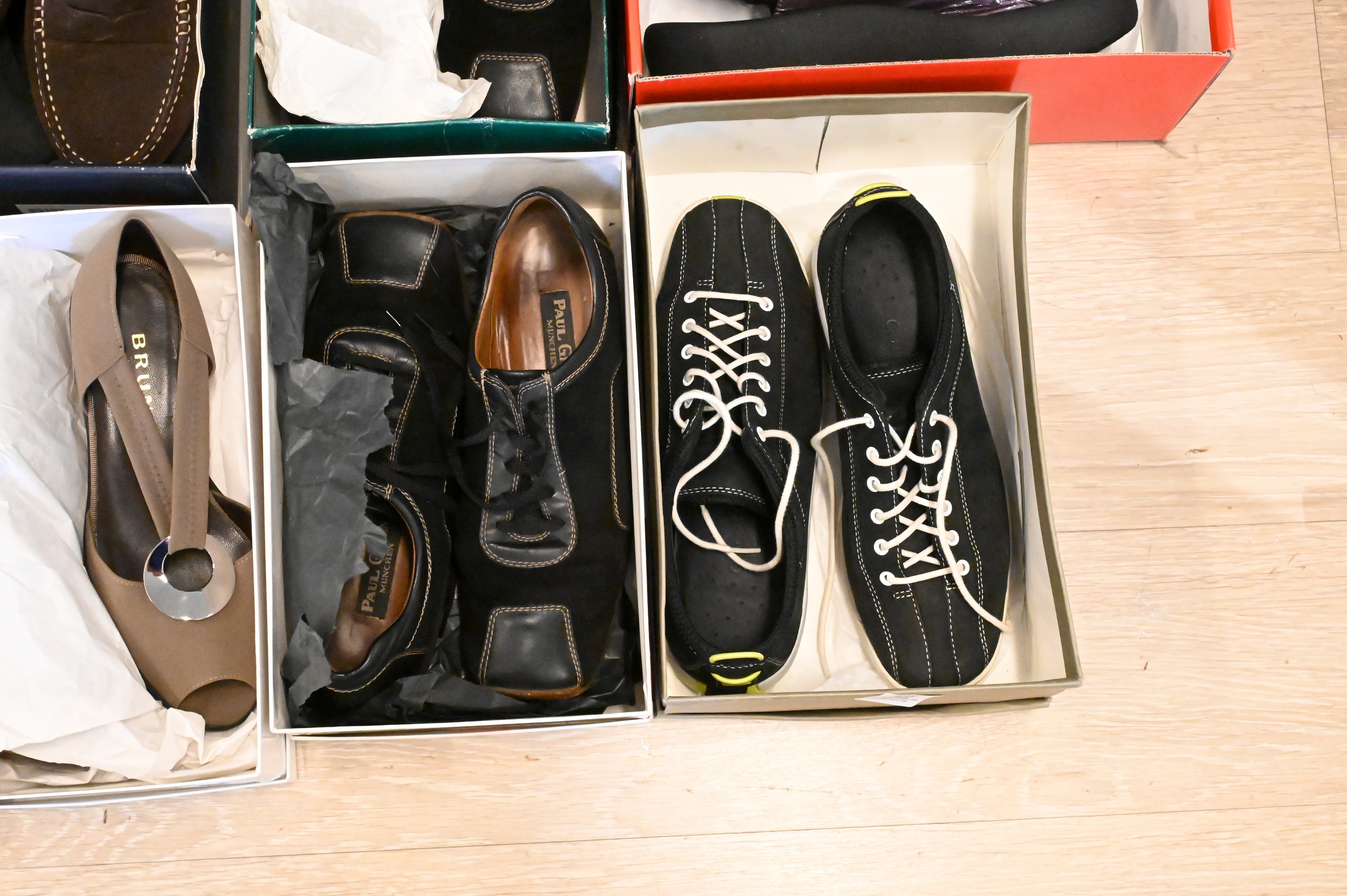 Brunate, Step Fango, retails for $279, Paul Green, Hattie Sport in black combo $215, Walky in purple metallic, retails for $160, sizes 7-8